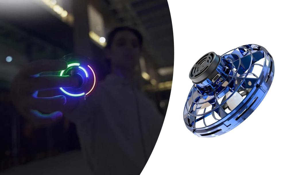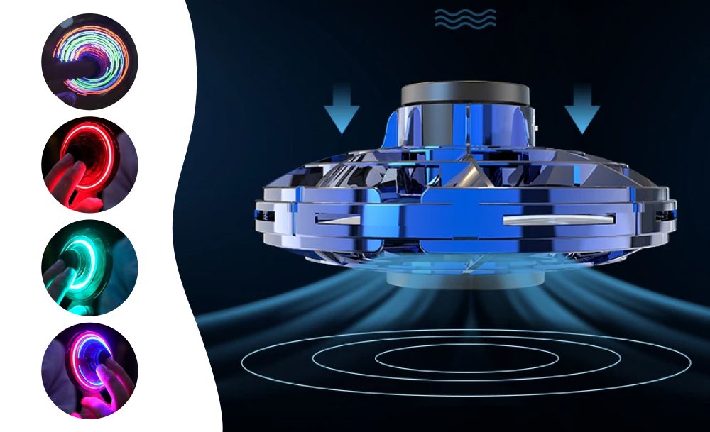 Спиннер оснащен яркой светодиодной подсветкой, которая переливается во время движения и напоминает летающую тарелку. Им очень легко управлять – стоит только раскрутить и запустить. Корпус выполнен из прочного пластика, который хорошо пружинит и защищает внутренние детали от повреждений.