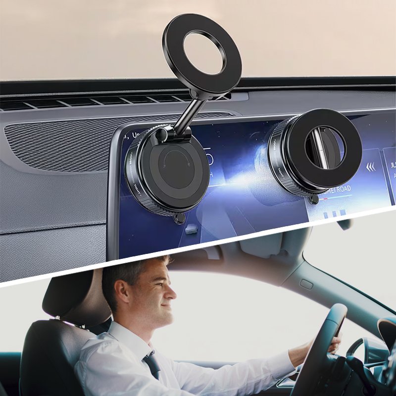 Свободный оборот на 360° позволяет выбирать подходящий угол обзора для навигации, звонков или просмотра видео. Совместимость с MagSafe делает держатель подходящим для любых смартфонов с магнитным кольцом. Компактный гаджет экономит место и обеспечивает безопасность в пути: руки всегда остаются на руле, а телефон – под постоянным контролем.
