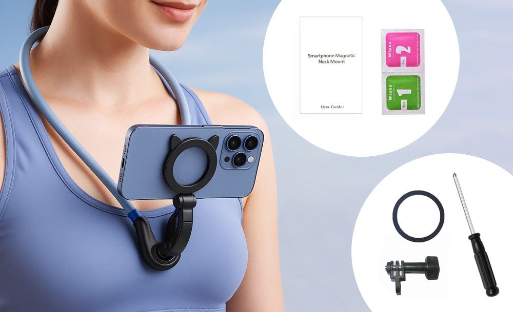 Магнитный держатель на шею — это удобное решение для съёмки от первого лица без лишних усилий. Просто прикрепите телефон с помощью магнита, наденьте крепление на шею — и ваши руки остаются свободными. Идеально для видеоблогов, стримов, готовки, мастер-классов или активного отдыха.