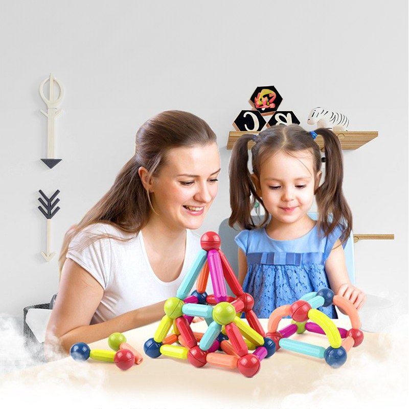 Магнитный конструктор в чемоданчике на 36 деталей идеальный выбор для развлечения и обучения вашего малыша. Из деталей можно составлять все, что придумает ребенок, тренировать логику, моторику и фантазию. Палочки сделаны из высококачественного пластика, а магниты надежно спрятаны внутри.