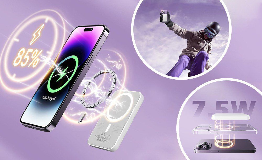 Магнитный Power Bank 10000 мАч обеспечивает быструю и эффективную зарядку смартфонов и других устройств благодаря высокой емкости и поддержке беспроводной зарядки. Магнит позволяет надежно фиксировать Power Bank на задней панели телефона, а компактный дизайн делает его удобным для ежедневного использования.