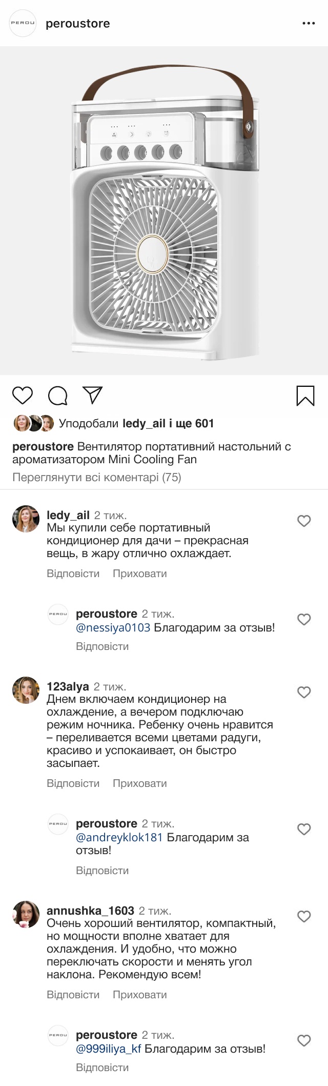 Одной из главных особенностей этого вентилятора является большой резервуар для воды. Вы можете добавлять в него как воду, так и кубики льда для более прохладного эффекта. Устройство имеет семь мягких светодиодных светильников, а также пять отверстий для более эффективного увлажнения воздуха.