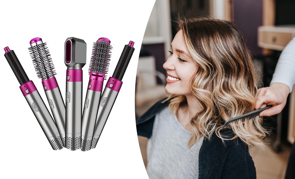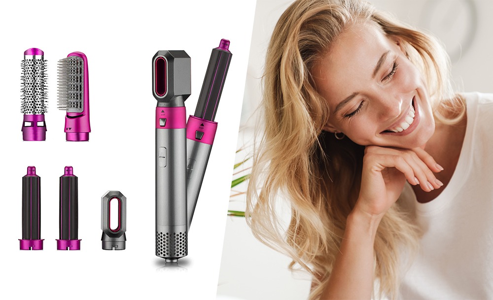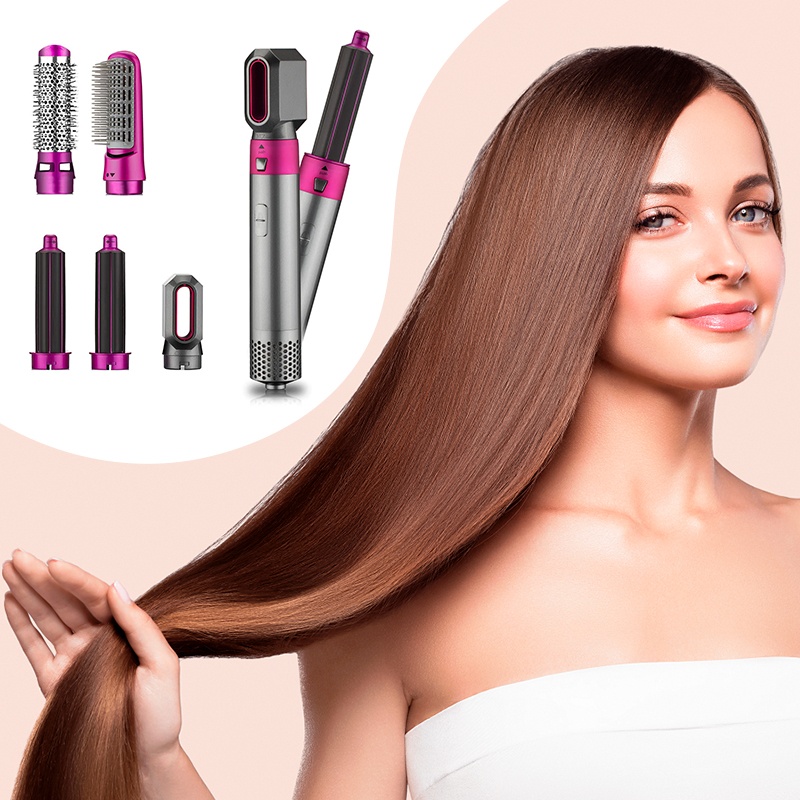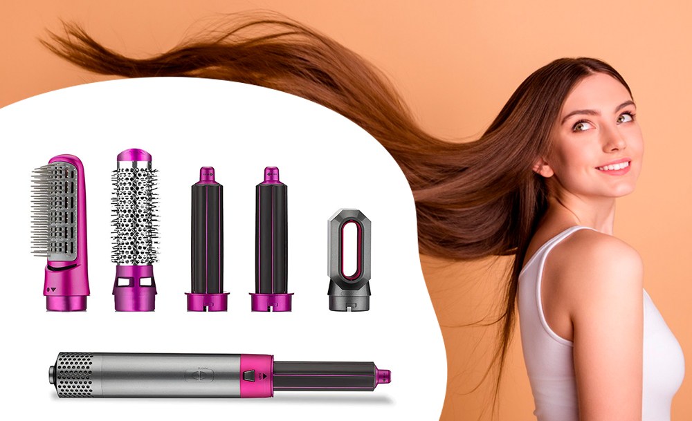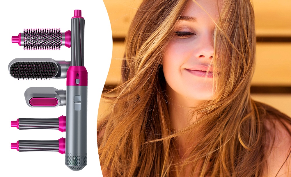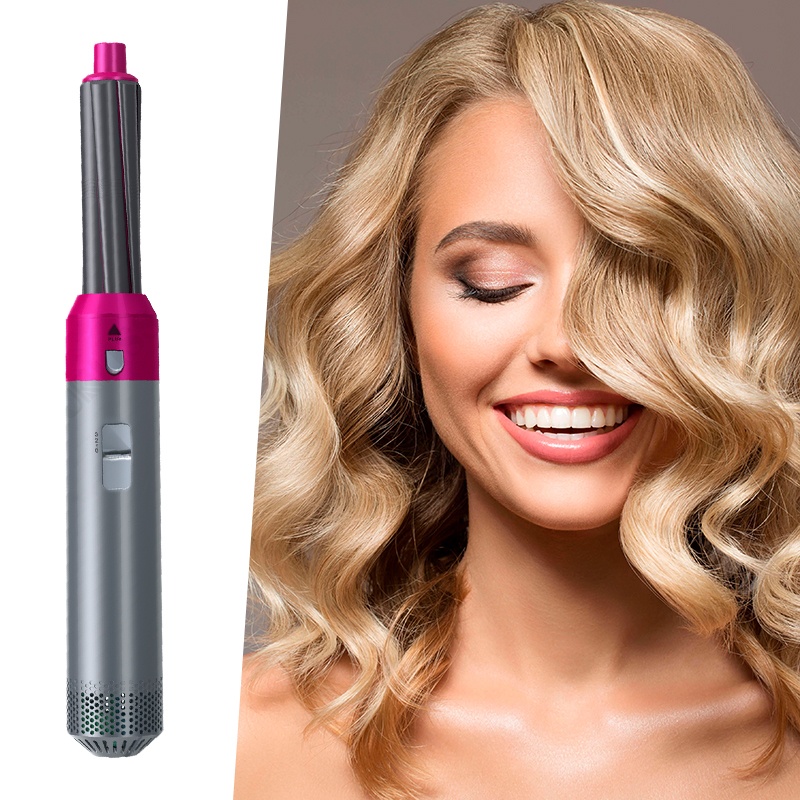 Мультистайлер 5 в 1 – это профессиональный прибор для ухода за волосами и создания элегантного образа. Фен оснащен пятью съемными насадками: пре-стайлинг бережно высушивает волосы, мягкая щетка выпрямляет и разглаживает, 2 цилиндрических плойки создают объемные локоны, щетка-брашинг придает неповторимый объем у корней.