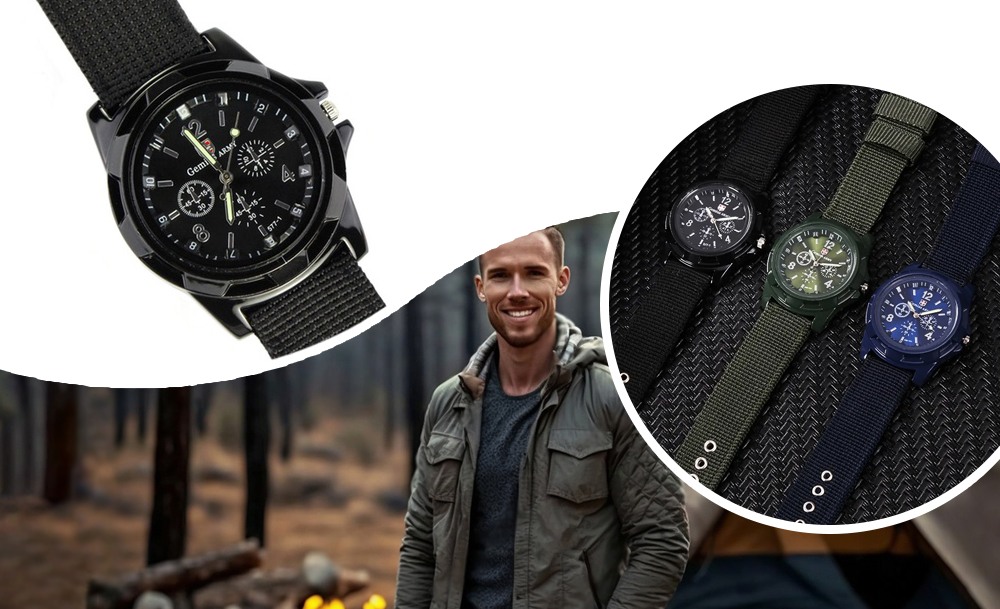 На циферблате расположены большие контрастные цифры и стрелки с люминесцентным покрытием для видимости в темноте. Часы оснащены надежным нейлоновым ремешком, который удобно фиксируется на запястье и устойчив к износу. Водостойкость позволяет использовать его во время мытья рук или под небольшим дождем.