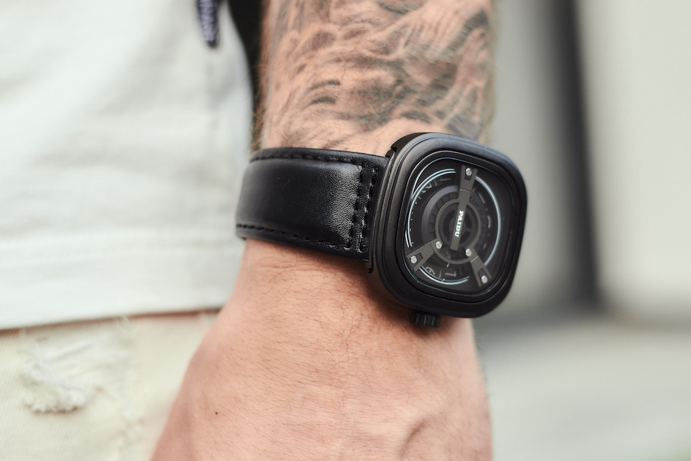 Циферблат оснащен полой поворотной пластиной с календарем на каждый день, за счет чего часы выглядят неординарно и креативно. Кварцевый механизм отличается высокой точностью и качеством, а ремешок из натуральной кожи удобно и прочно удерживает часы на руке. Корпус из ударопрочных и водостойких материалов обеспечивает практичность и надежность.