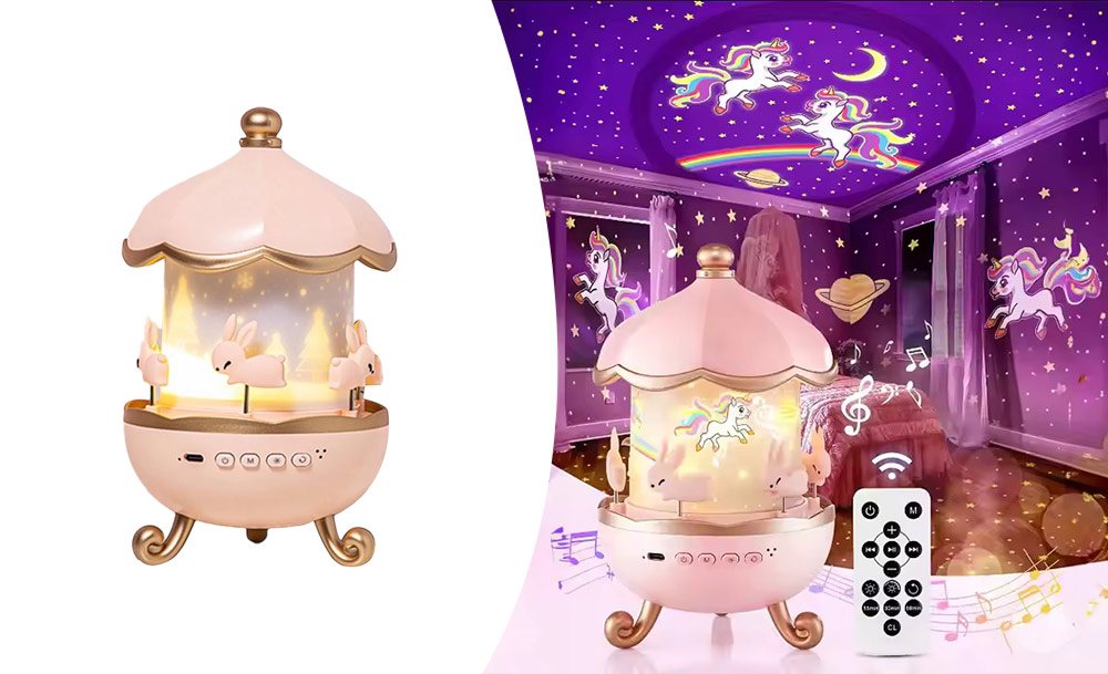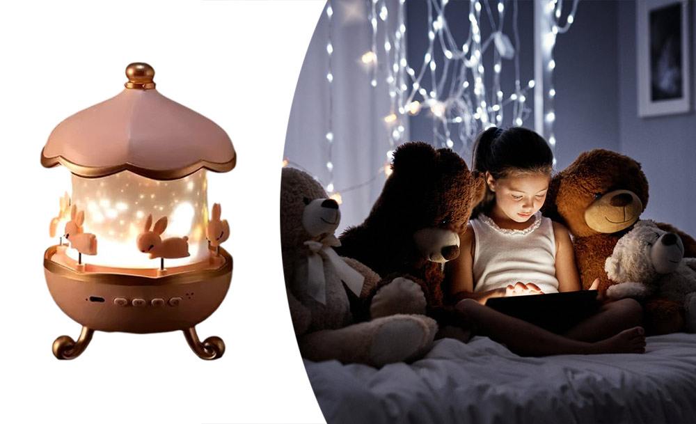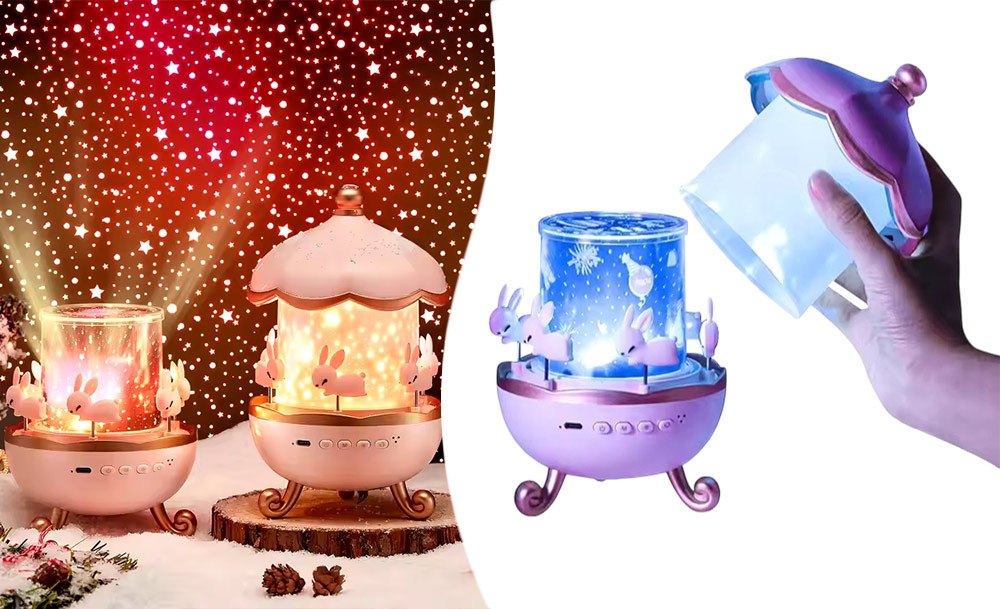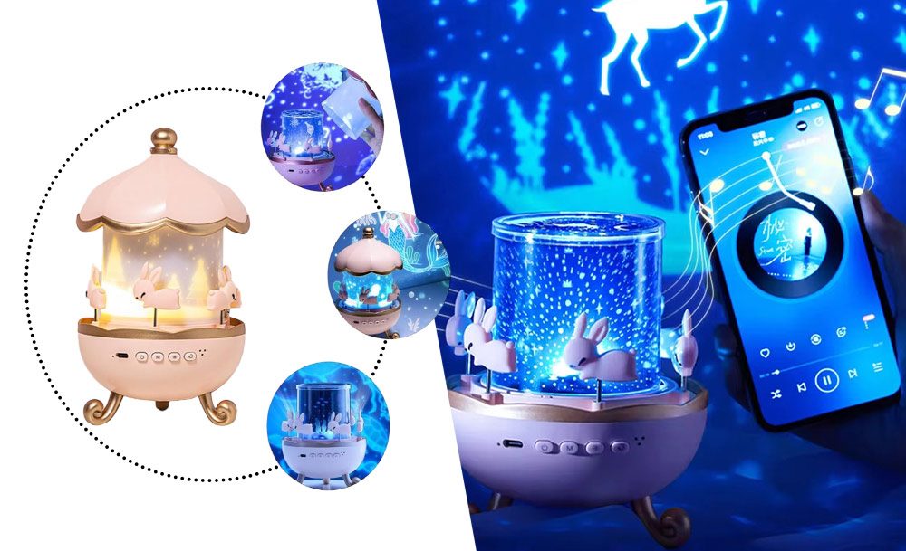 Светильник-ночник LED «Карусель зайчиков», 12 мелодий + Bluetooth – проектор звездного неба с проекциями превращает любое помещение в волшебное космическое пространство. С помощью USB-подключения, вы сможете наслаждаться завораживающими звездными узорами и планетами, создавая уникальную атмосферу для расслабления и сна.