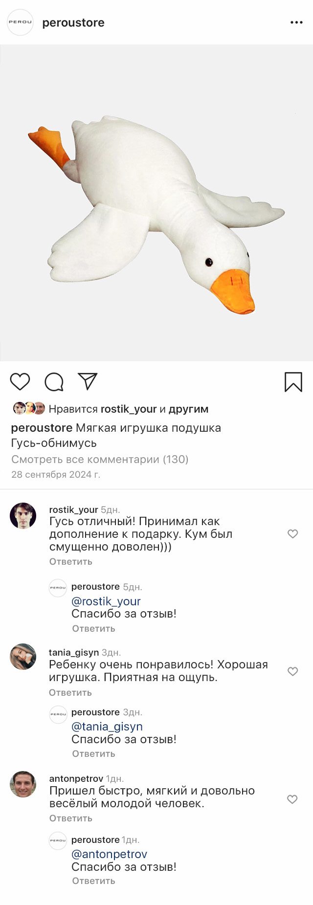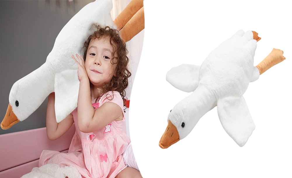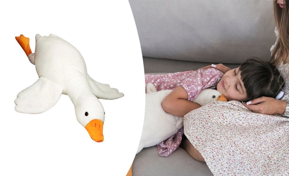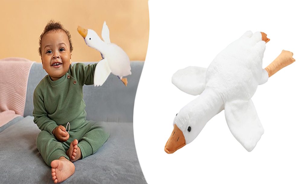 Гусь подходит для чтения в постели, просмотра телевизора, для детского кресла, путешествий или отдыха беременных. Игрушка изготовлена из самых качественных и на ощупь приятных материалов и на 100% безопасна даже для самых маленьких детей, не магнитит к себе пыль, не блекнет и не линяет.