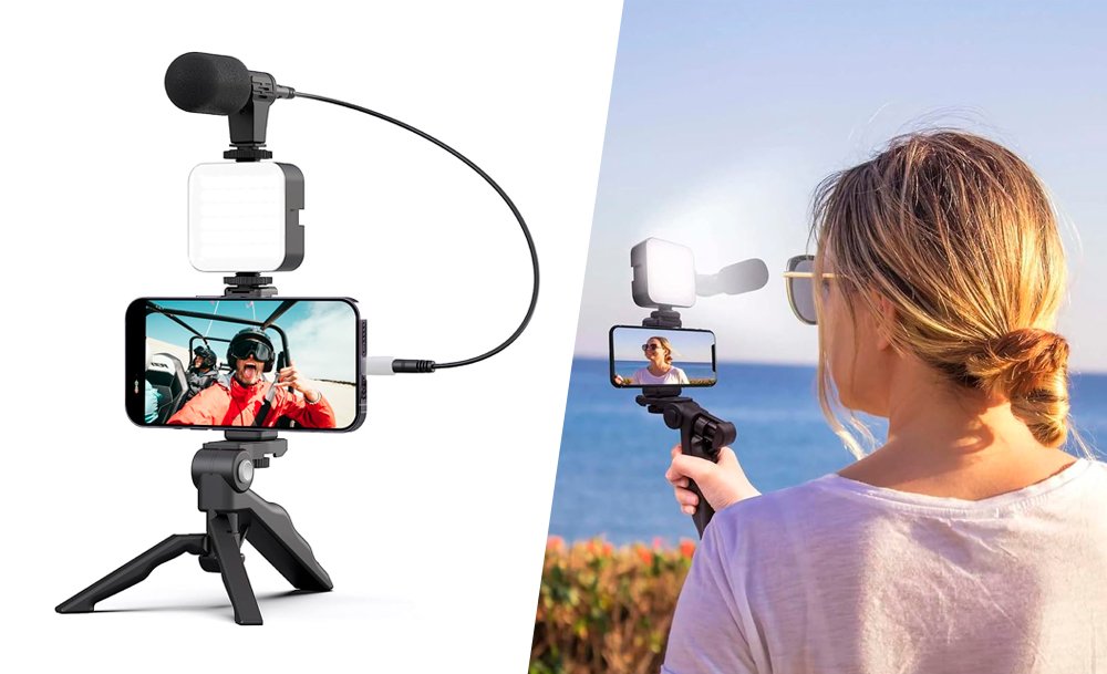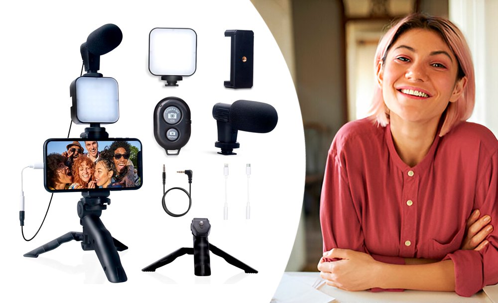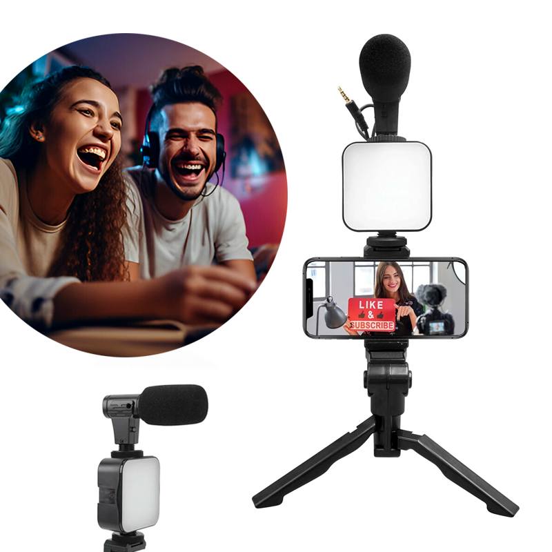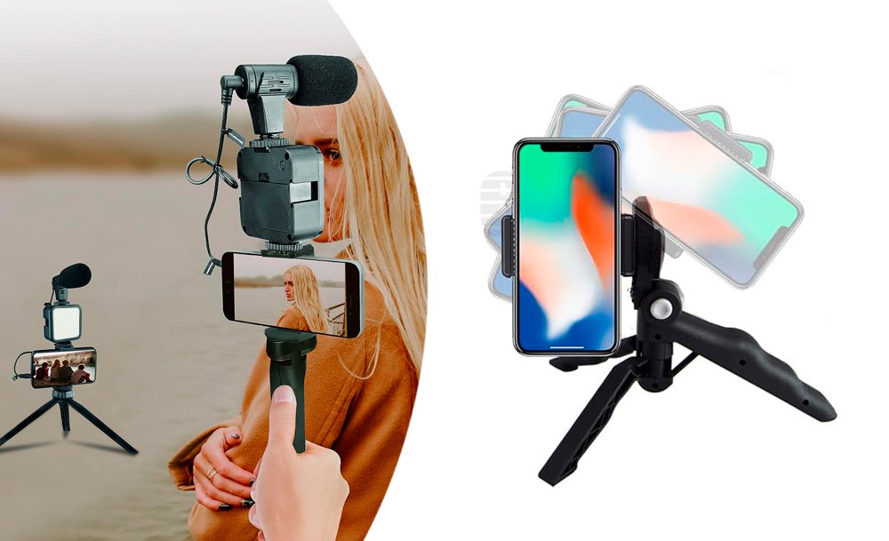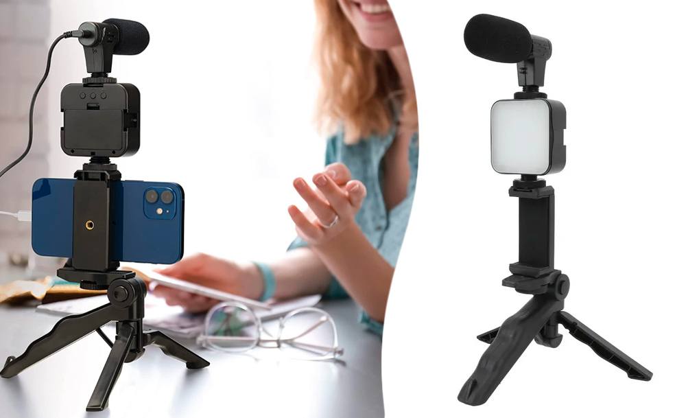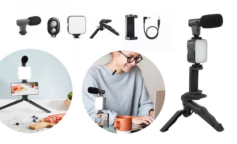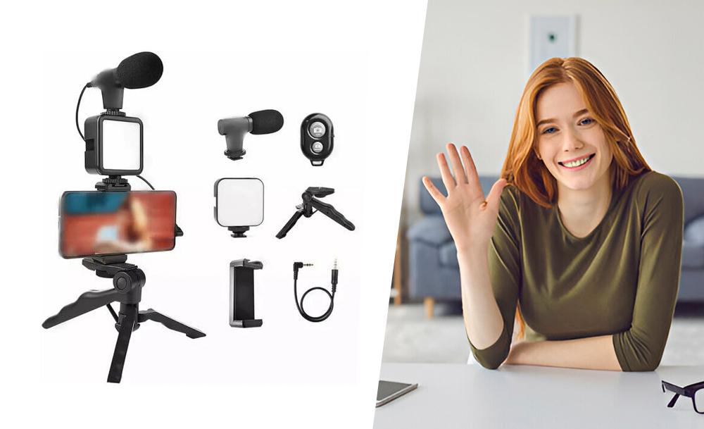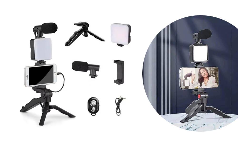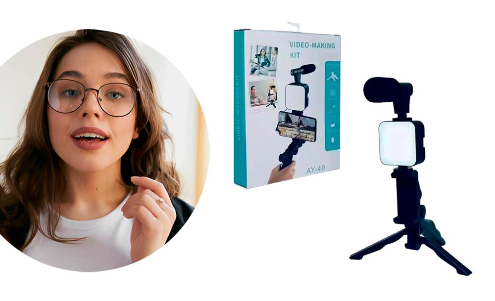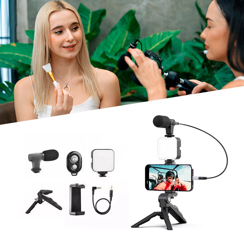 Набор блогера 4 в 1: штатив-тренога, свет, микрофон, пульт AY-49, замечательный комплект, включающий все необходимое для высококачественной видеозаписи и фотосъемки с максимальным комфортом. Этот набор содержит микрофон, подсветку, тренога, держатель для телефона и Bluetooth кнопка.