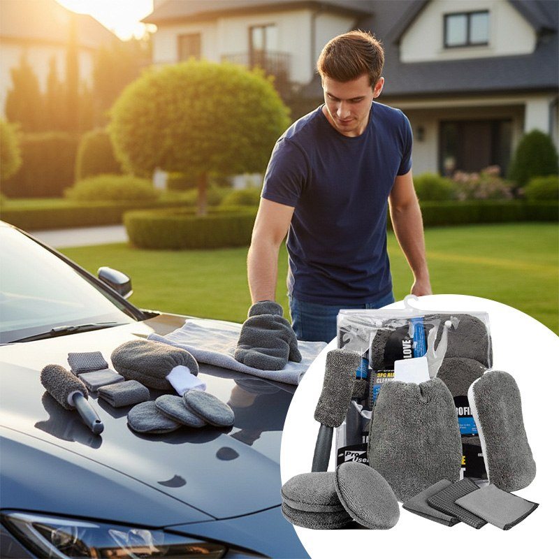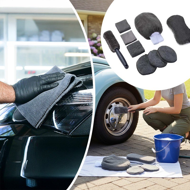 Набор для мойки авто 9 в 1 – это все, что нужно для идеальной чистоты автомобиля. В комплект входят полотенца из микрофибры, губка и двухсторонняя перчатка – для бережного ухода за кузовом, стеклами и салоном. Практичные аксессуары экономят время и силы, а универсальность набора позволяет выполнять как быструю мойку, так и тщательный детейлинг.