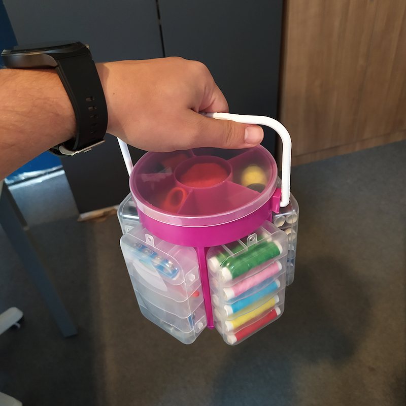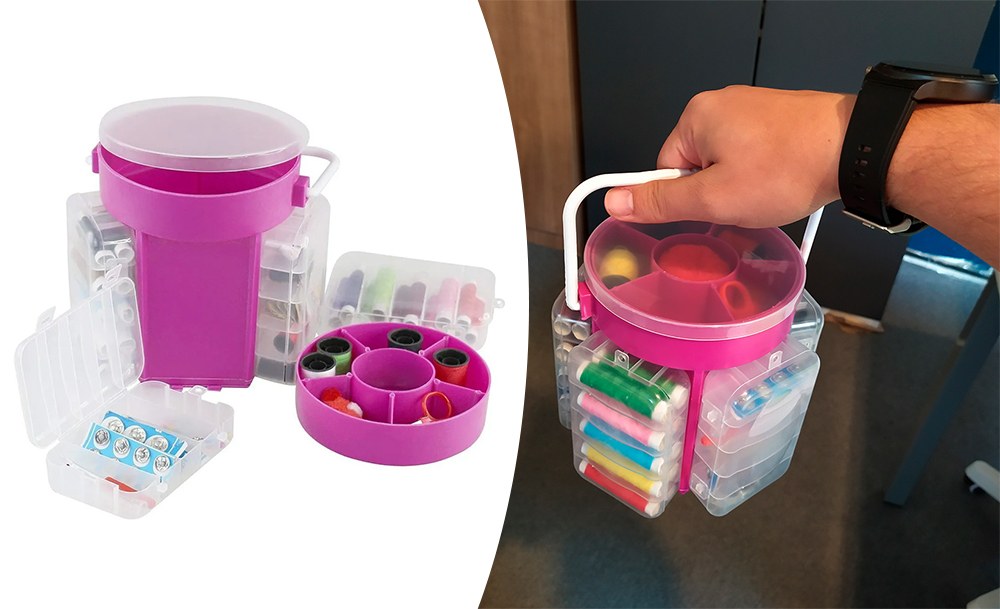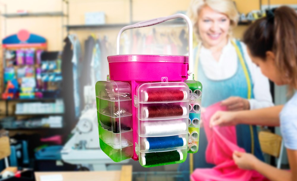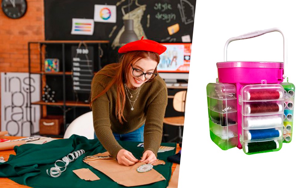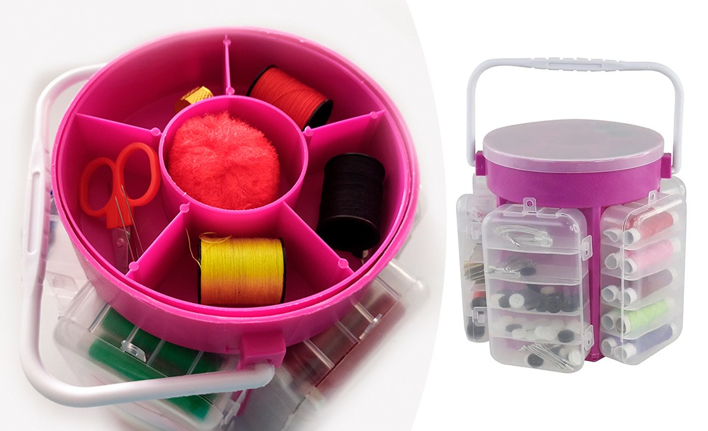 В наборе 5 ячеек для хранения и съемные полочки, которые позволят удобно организовать пространство. Они сделаны из прозрачного пластика, поэтому все швейные принадлежности будут на виду.