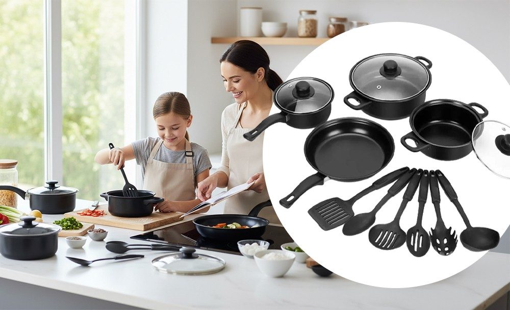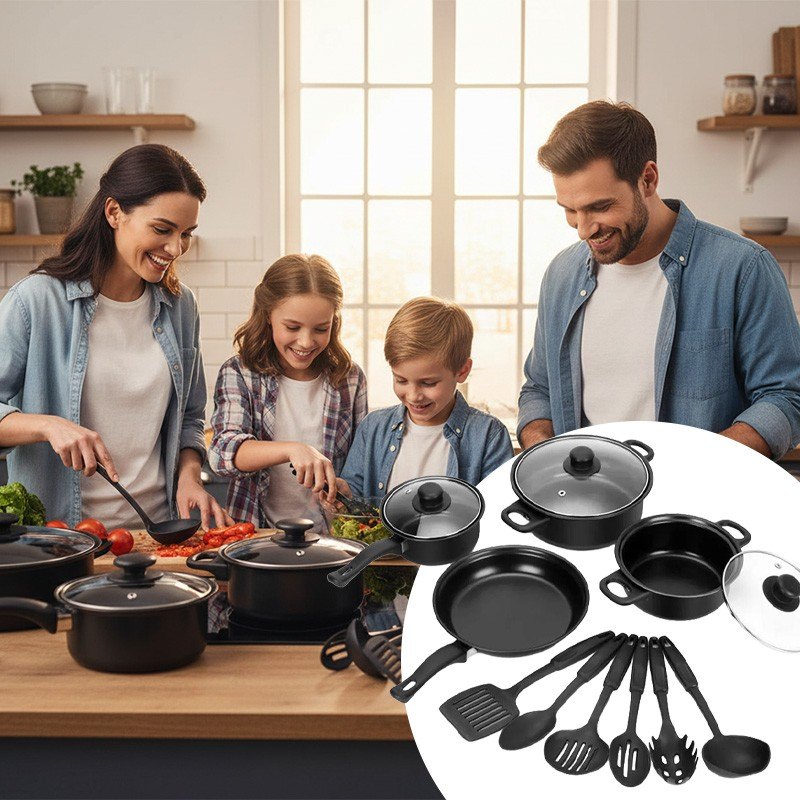 Набор посуды Dessini OR-2103 – это универсальное решение для домашней кухни. В комплект входит 13 предметов: кастрюли разных объемов, удобная сковорода и практичные кухонные принадлежности – все, что нужно для варки, жарки, тушения и запекания.