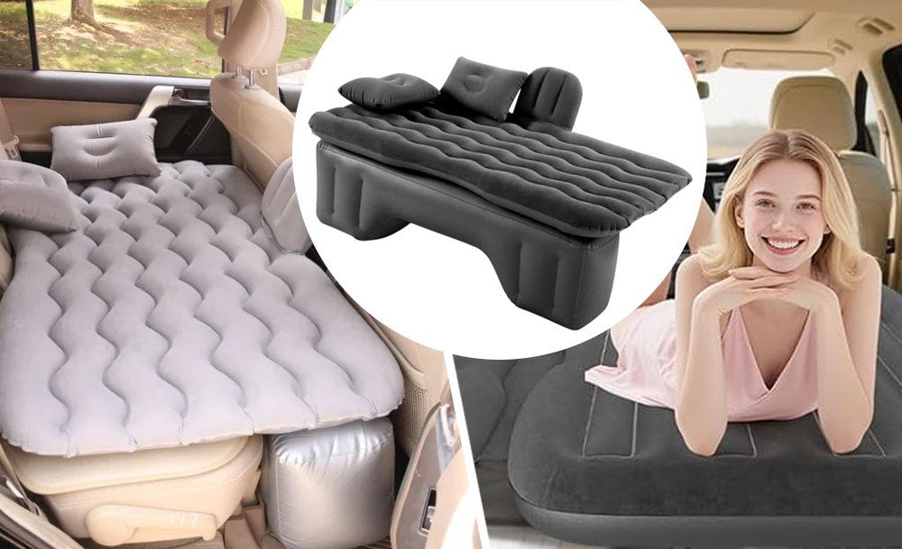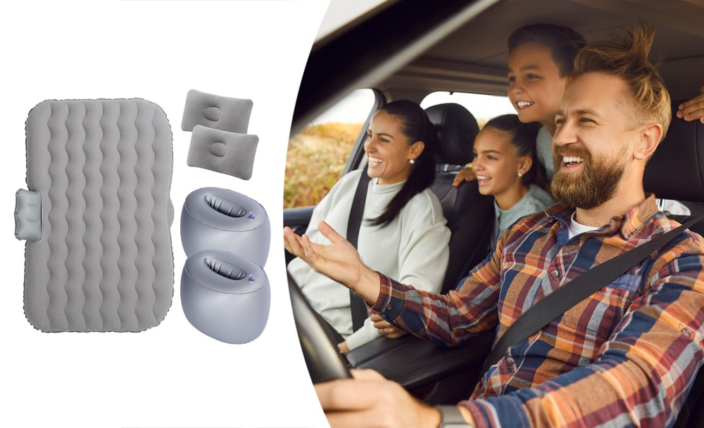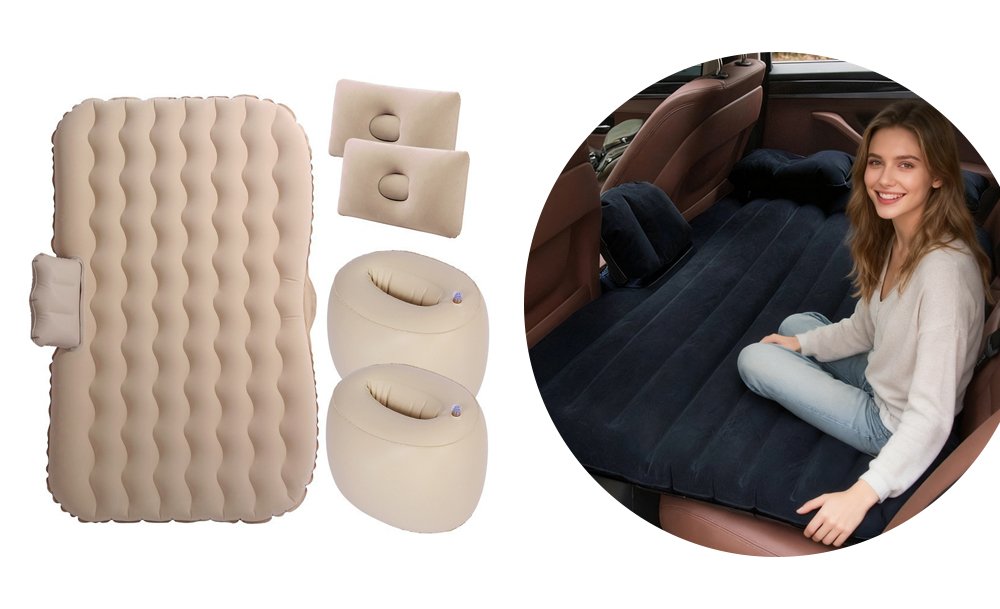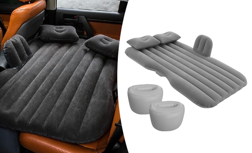 В комплект входят две надувные подушки и электрический насос, работающий от прикуривателя. Матрас идеально подходит для кемпинга, долгих путешествий и отдыха на природе, предлагая удобство и быстроту установки.