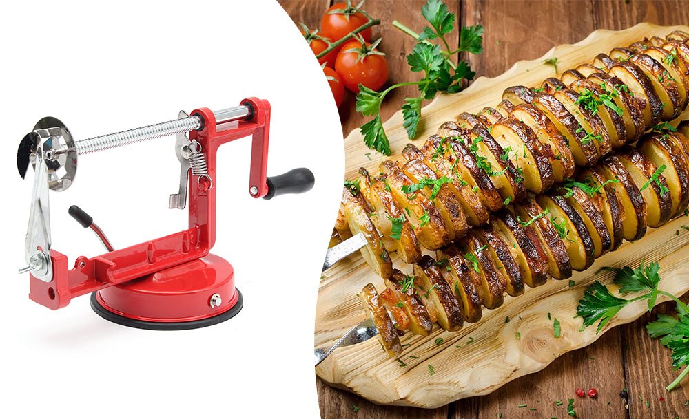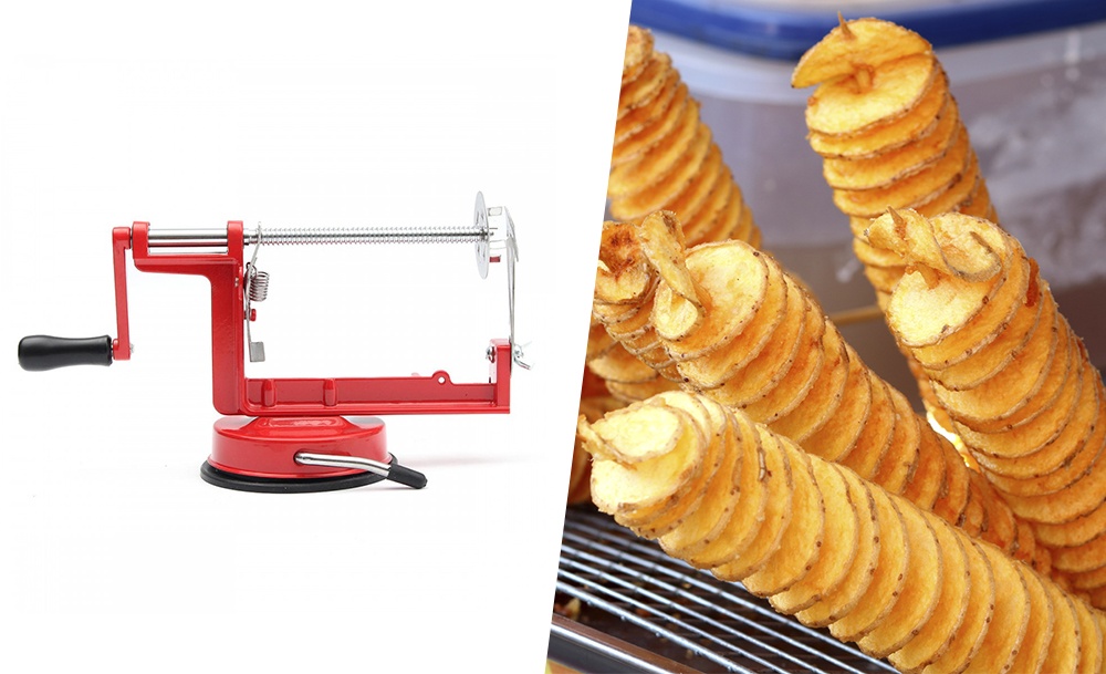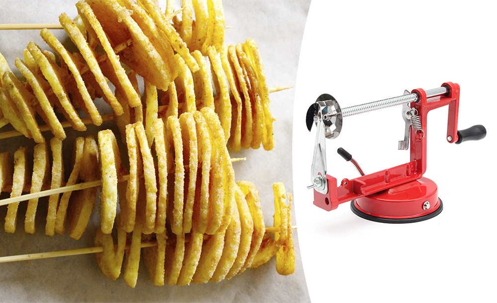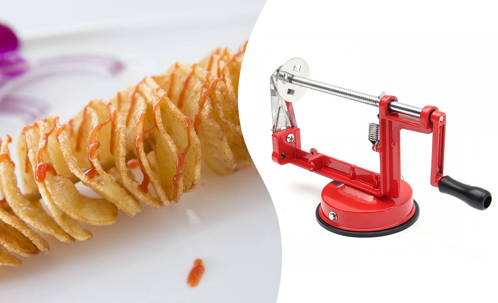 Машинка для нарезки спиралью позволит оригинально подготовить картофель для жарки домашних чипсов. С ее помощью можно также порезать другие овощи, чтобы красиво украсить и подать любые блюда к столу. Прибор для картофеля фри быстро и без усилий нарежет необходимое количество овощей на ровные аккуратные ломтики нужного размера. Благодаря острым лезвиям одним движением руки получается сразу большое количество продуктов.
