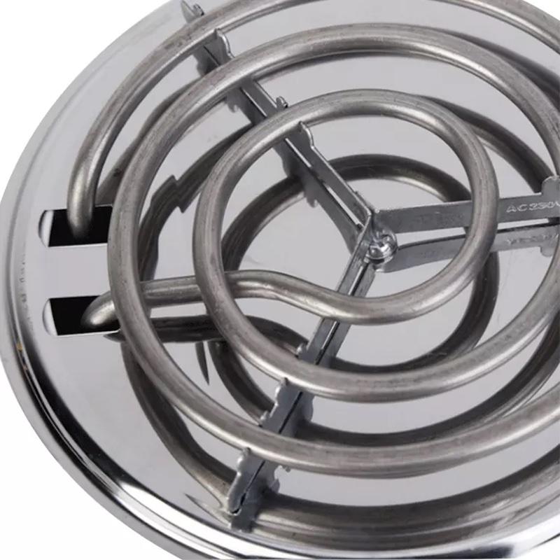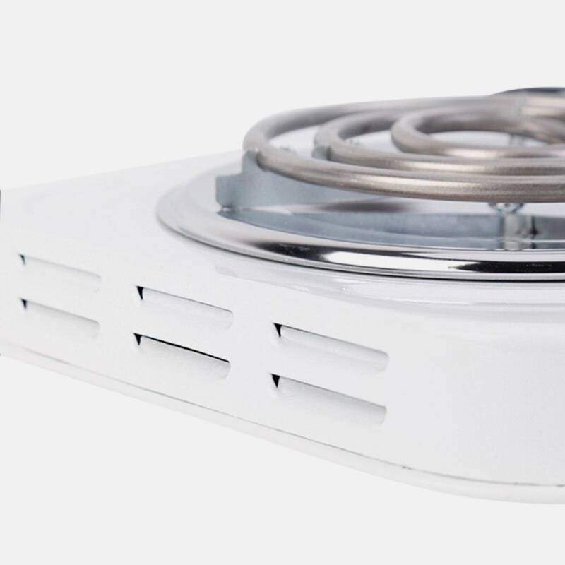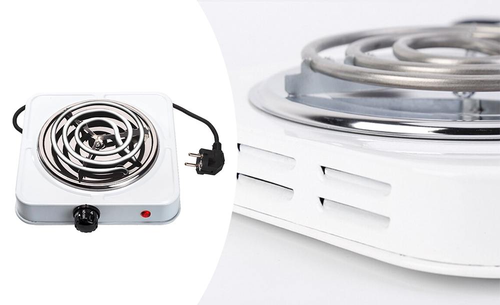 Плита оснащена спиральным нагревательным элементом, который быстро приобретает нужную температуру и мощность; переключение режимов регулируется поворотным тумблером. На боковой панели имеется также индикатор, что служит оповещением подключения к сети, а также напоминанием о необходимости выключения прибора.