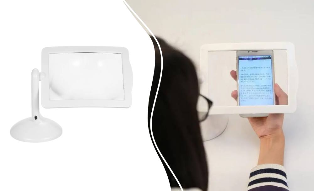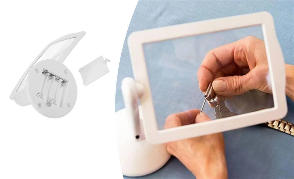 Универсальная настольная лупа с LED подсветкой на батарейках Brighter Viewer имеет трехкратное увеличение и встроенную светодиодную подсветку. Для дополнительного удобства экран вращается на 360 градусов. Работает от 4-х батареек.