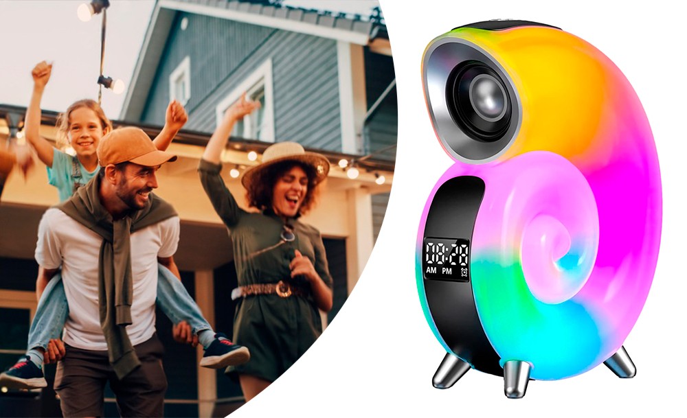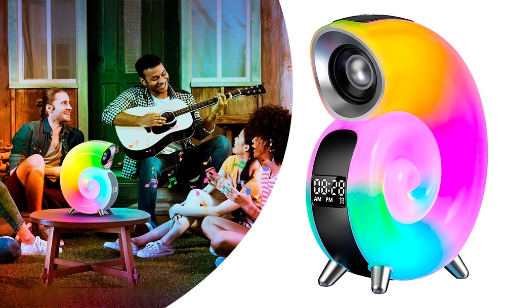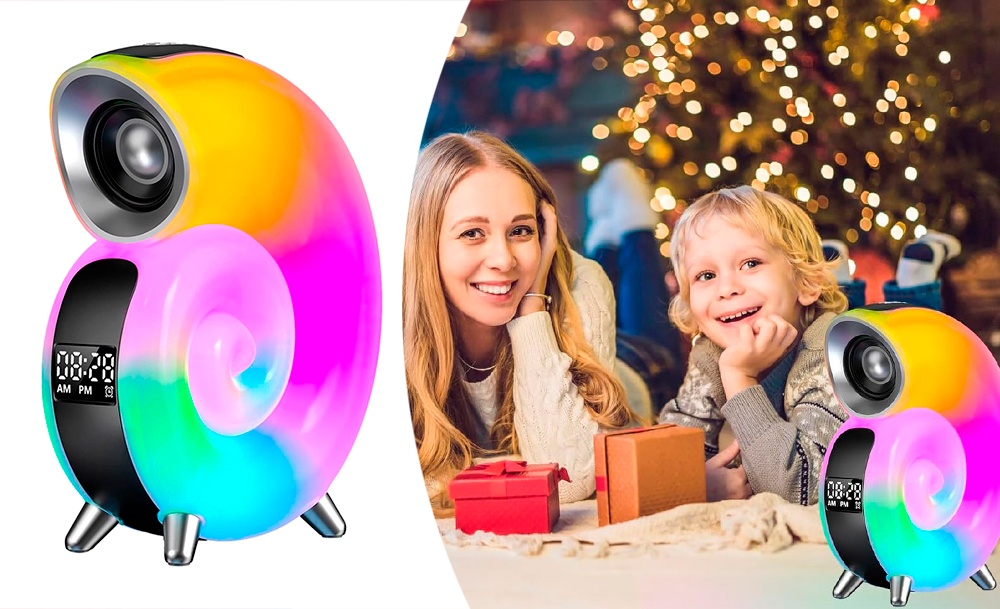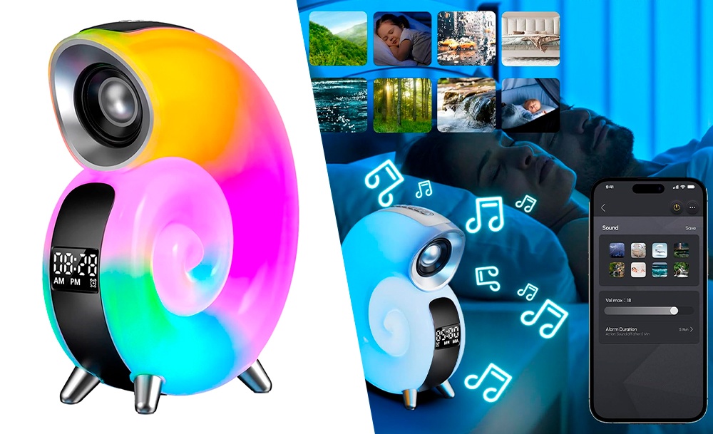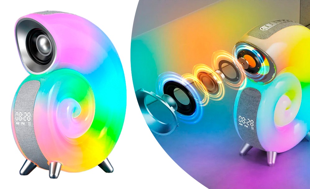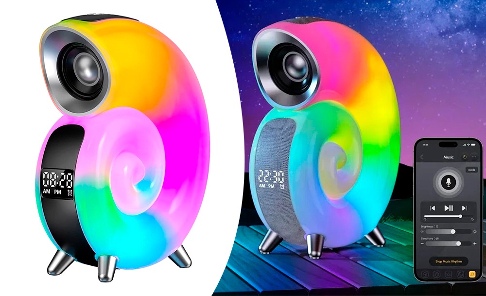 Портативная смарт-колонка Light Sound Machine N70 создает атмосферу и идеальное настроение для любой комнаты. Лампа оборудована Bluetooth, часами, будильником, LED подсветкой и приложением для управления через смартфон.