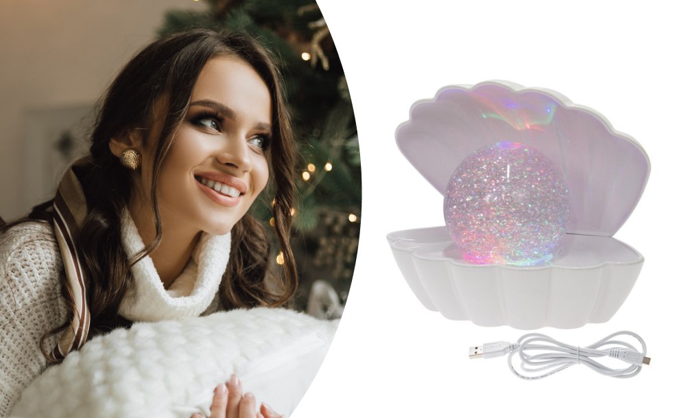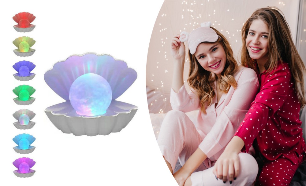 Ночник – светильник в форме ракушки с жемчужиной переключается в разные цветовые режимы, благодаря чему совмещается с любым интерьером и настроением, украшает дом и создает уютную атмосферу. Он выполнен из высококачественного антивандального пластика, обладает пыле и влагозащитой.