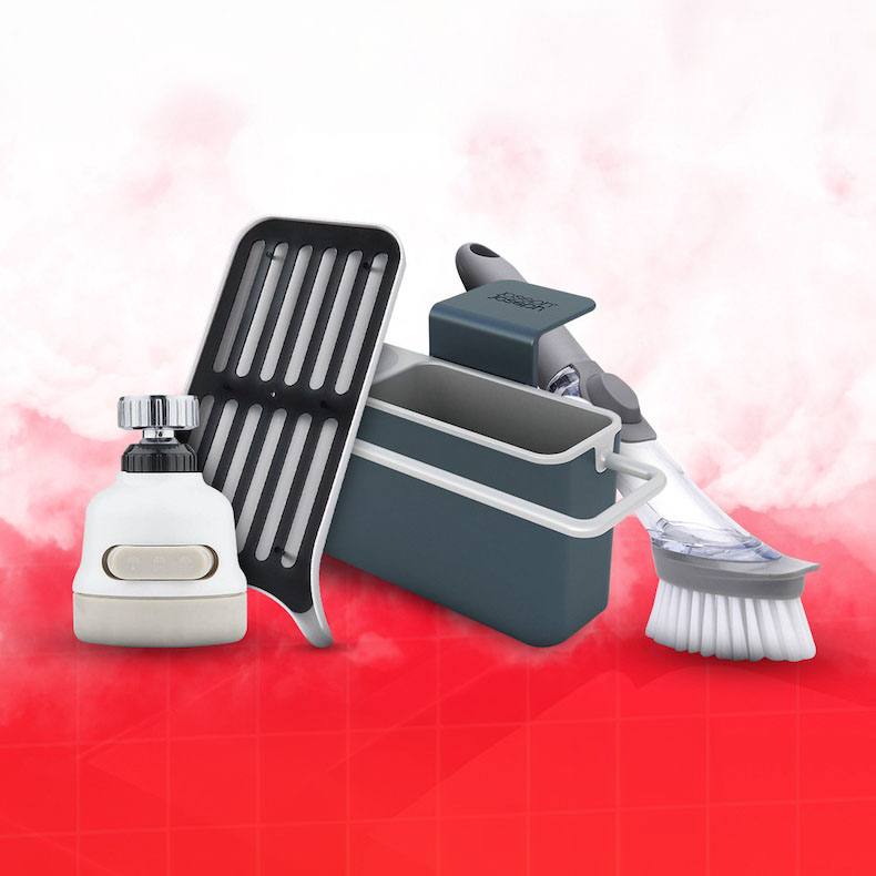 Органайзер для раковины позволяет аккуратно хранить кухонные тряпки, губки и моющие средства, автоматически сливая излишки воды сразу в раковину. Экономит место, компактно располагаясь внутри. Щетка с встроенным дозатором из прозрачного пластика поможет контролировать расход моющего средства и регулировать его подачу кнопкой.