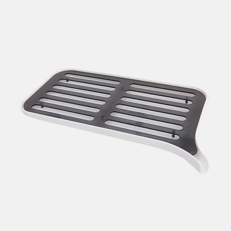 Сушилка снабжена решеткой, на которой сушится посуда, и носиком, через который можно сливать воду. Она легко разбирается и моется. Насадка на кран ограничит поток, не снижая его напор и интенсивность, тем самым позволяя экономить расход воды до 60 %.