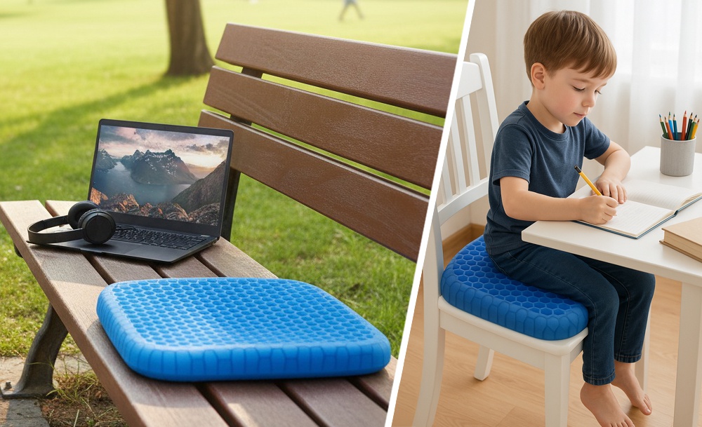 Подушка универсальна: подходит для офиса, автомобиля или дома. Съёмный чехол легко стирать, что делает её гигиеничной. Egg Sitter снимает усталость и расслабляет мышцы, а компактный дизайн позволяет носить её с собой.