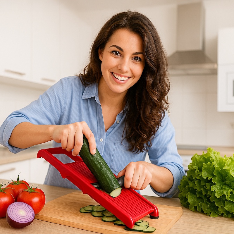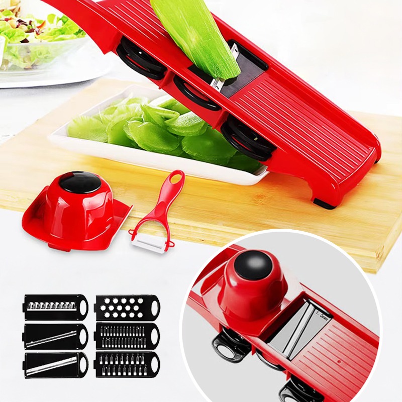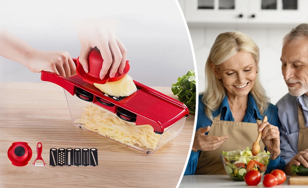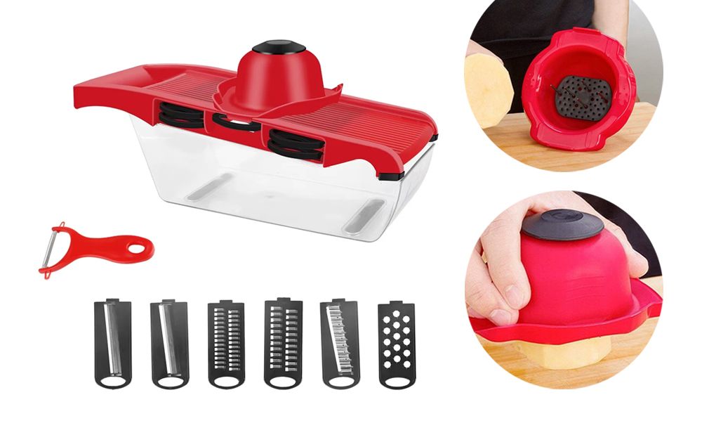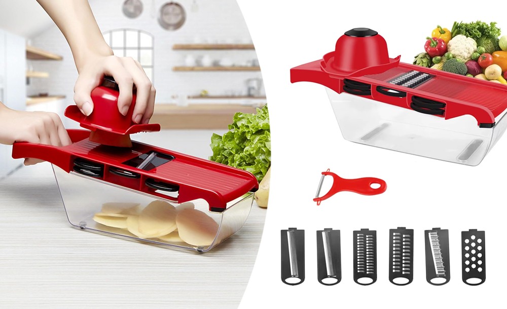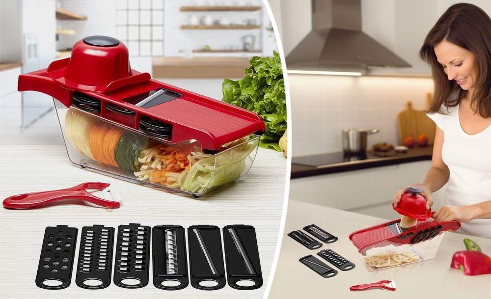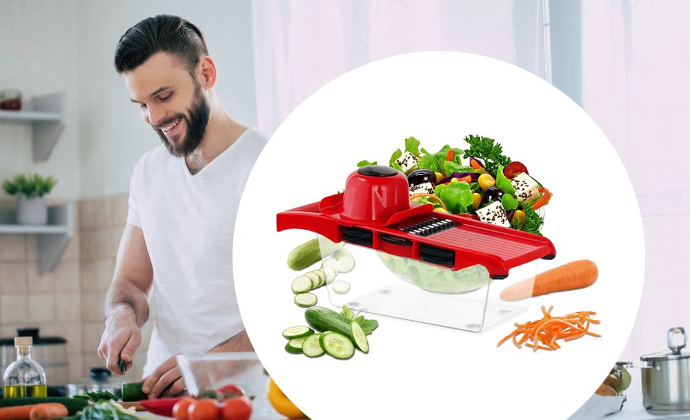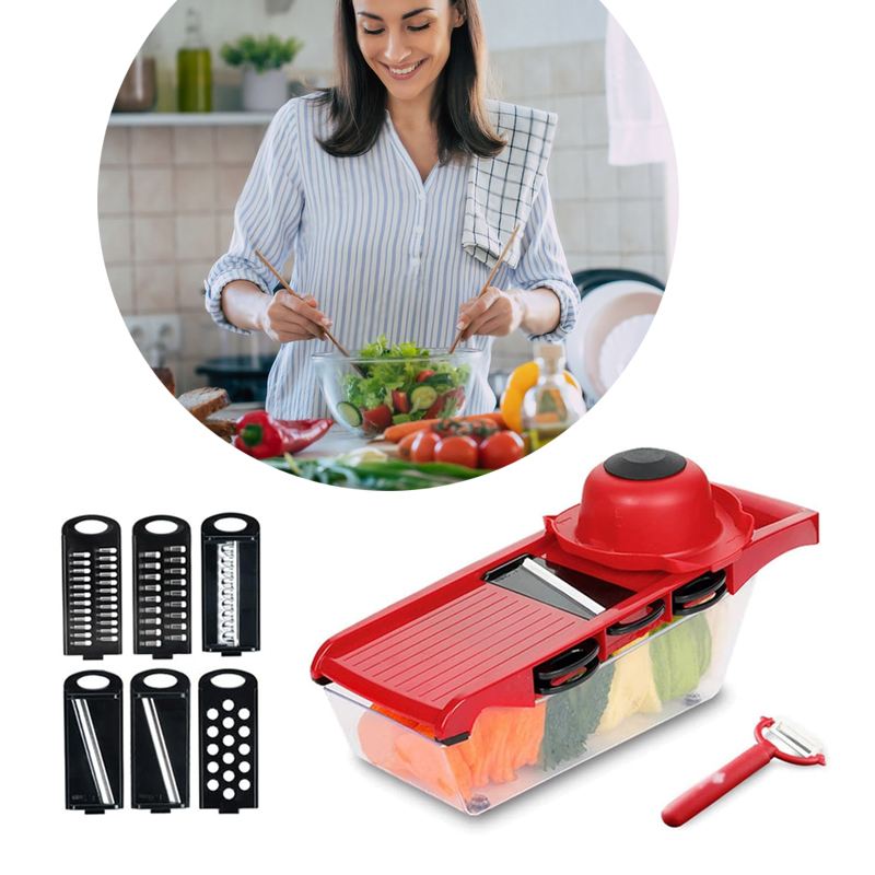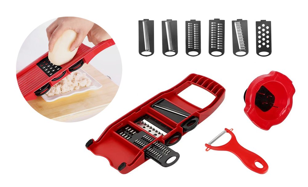 Удобная и компактная овощерезка Mandoline Slicer 6 в 1 станет незаменимым помощником на кухне. Она позволяет быстро нарезать овощи и фрукты разной формы и толщины — от тончайших ломтиков до соломки. Благодаря сменным насадкам, вы легко приготовите ингредиенты для салатов, гарниров или овощных закусок без лишних усилий.