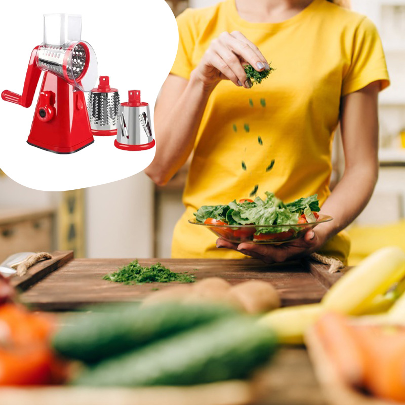 Овощерезка Tabletop– это удивительный помощник, который пригодится каждой домохозяйке. С помощью этого приспособления и специальных насадок, входящих в комплект, можно быстро измельчить любые овощи и фрукты для приготовления салатов, натереть их или же сделать аккуратные ломтики для сервировки стола.