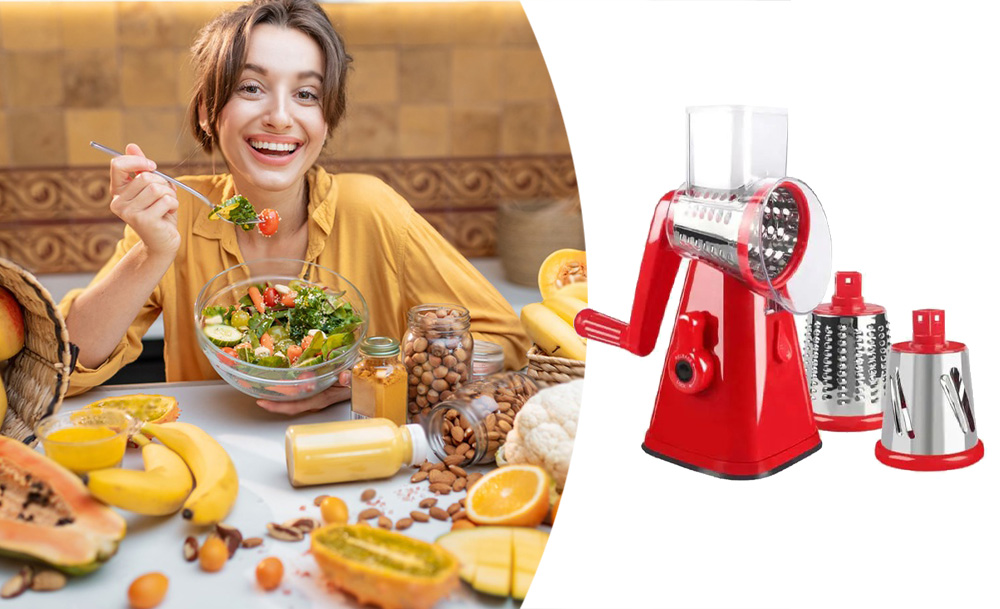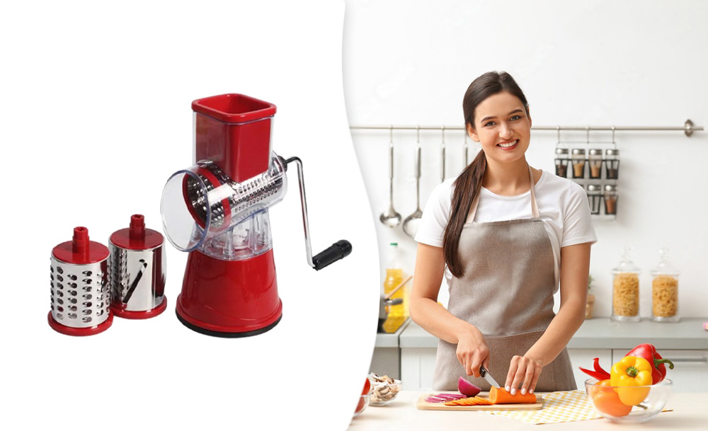 Овощерезка Kitchen Master BIG – это удивительный помощник, который пригодится каждой домохозяйке. С помощью этого приспособления и специальных насадок, входящих в комплект, можно быстро измельчить любые овощи и фрукты для приготовления салатов, натереть их или же сделать аккуратные ломтики для сервировки стола.