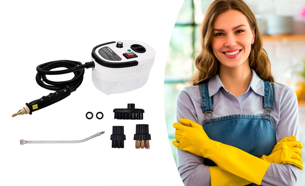 Пароочиститель – это отпариватель высокого давления мощностью 2500 Вт, который имеет в комплекте удлиненную насадку с изогнутым стержнем, стальную щетку, маленькую щетку, большую щетку с несколькими комбинациями для глубокой очистки.