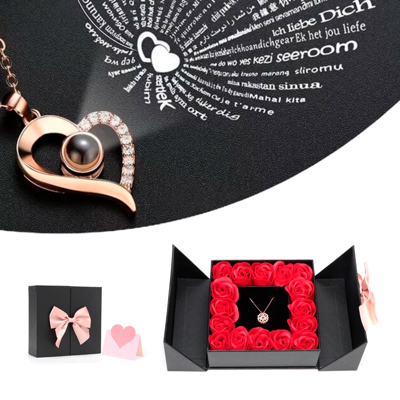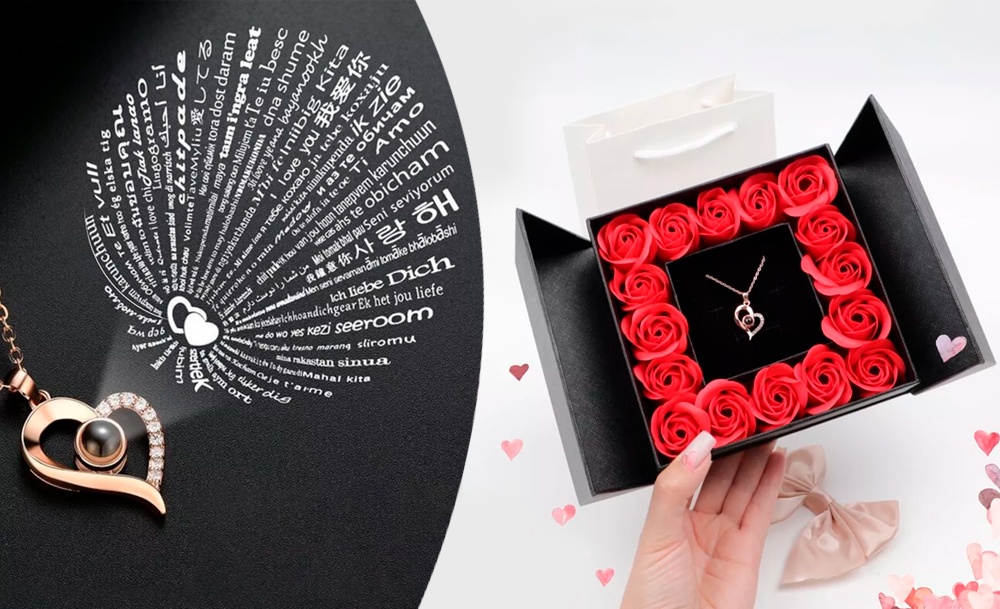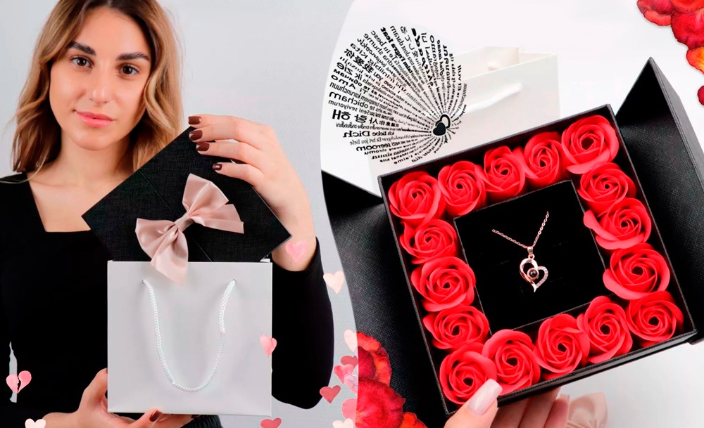 Подарочный набор, который говорит о чувствах без слов. В комплекте – изысканная композиция из 16 ароматических роз, элегантный кулон с проекцией «Я тебя люблю» на ста языках и роза-ночник с приятной LED-подсветкой. Он подчеркивает волшебство момента, создавая магическую атмосферу доверия и уюта.