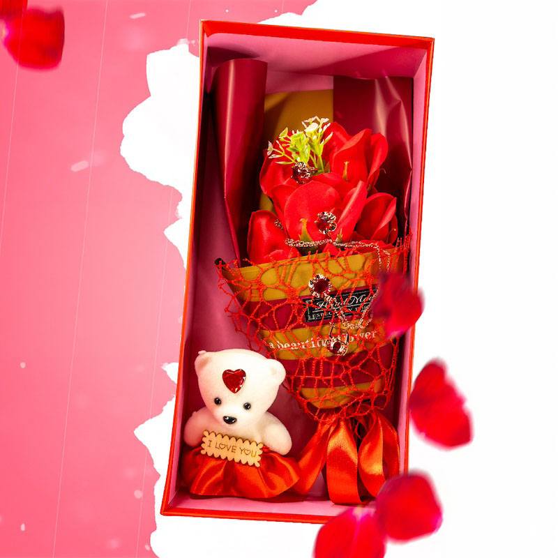 Подарочный набор ароматного мыла в виде роз с мишкой – это оригинальный выбор, который подойдет девочкам, девушкам и женщинам для любого праздника. Мыло ручной работы – букет красивых нежных роз – обладает приятным запахом.