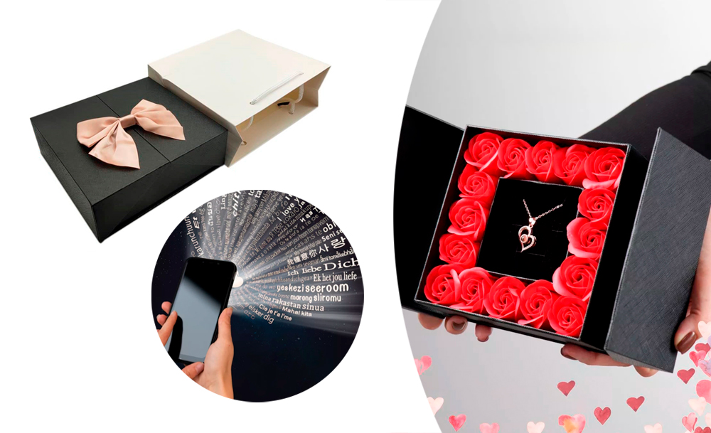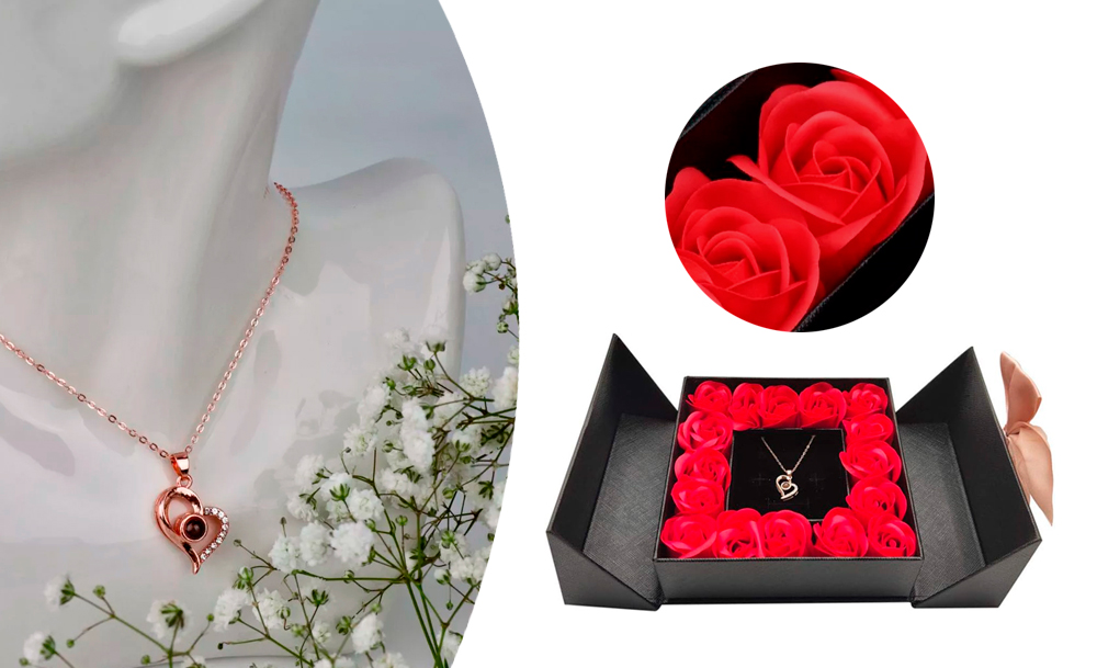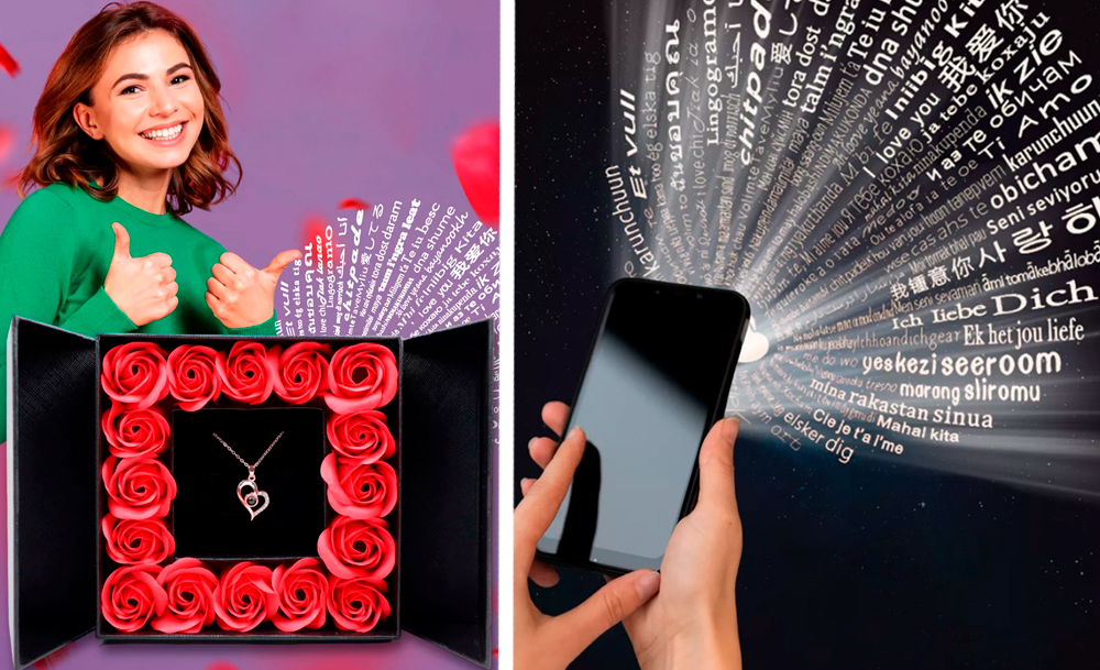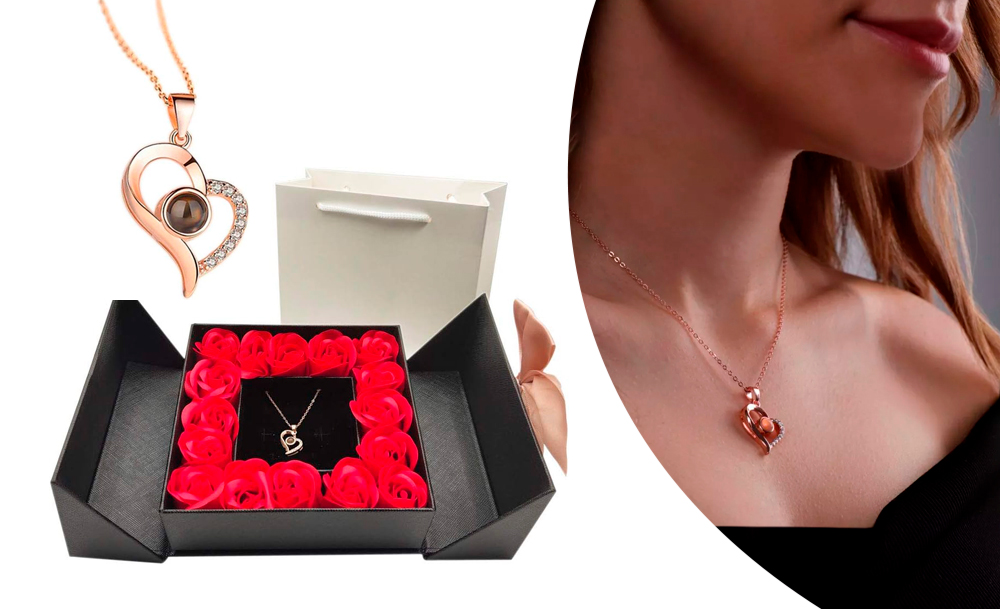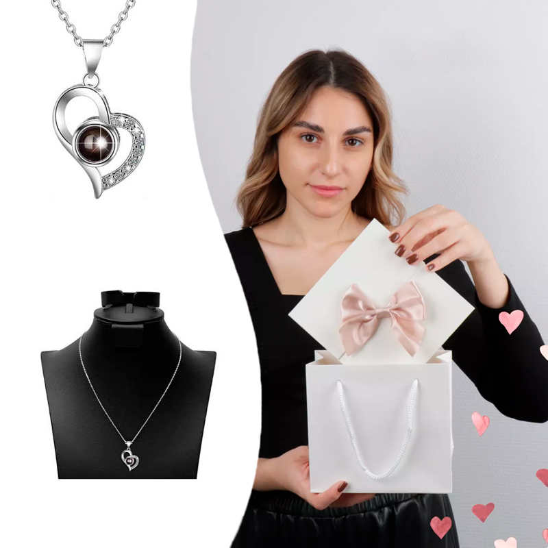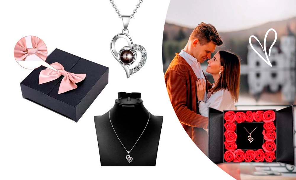 Красивая подвеска на шею, в необычной подарочной коробке не оставит равнодушным любого человека, а тем более прекрасную половину. Открыв коробку, Вы найдете необычный кулон со световой проекцией “Я тебя люблю” на ста языках мира. В середине кулон украшен камнем – это самый романтичный подарок для нее.