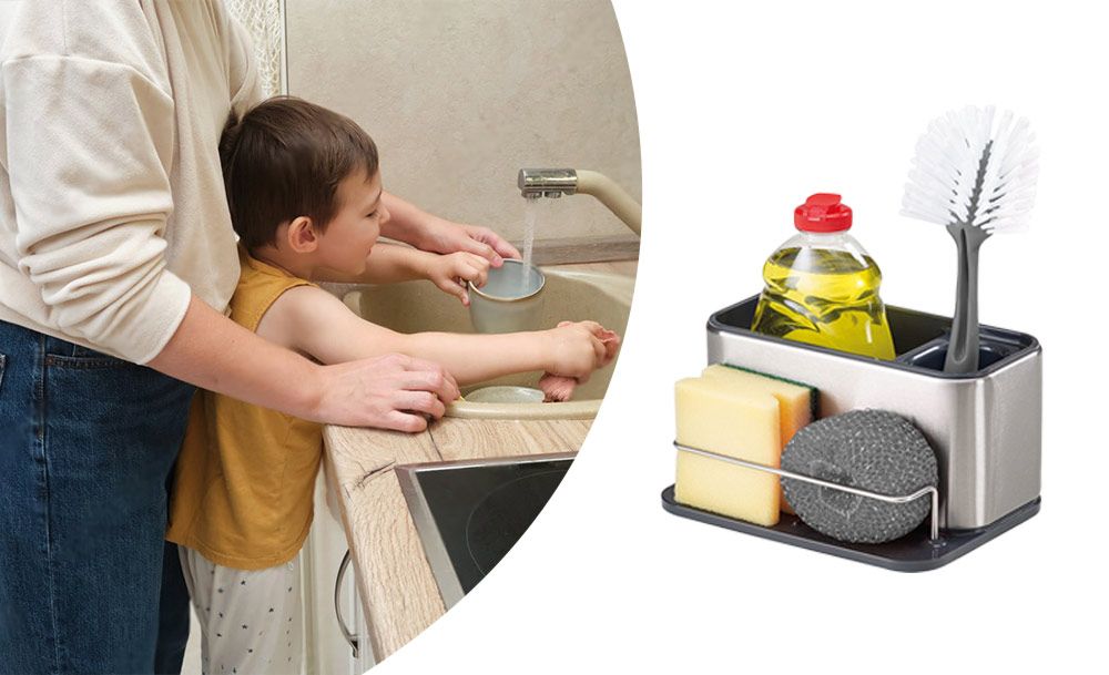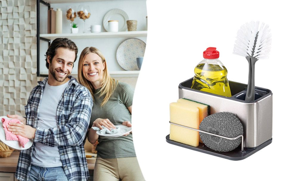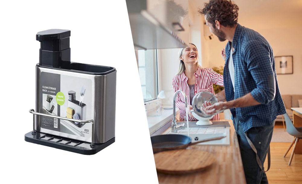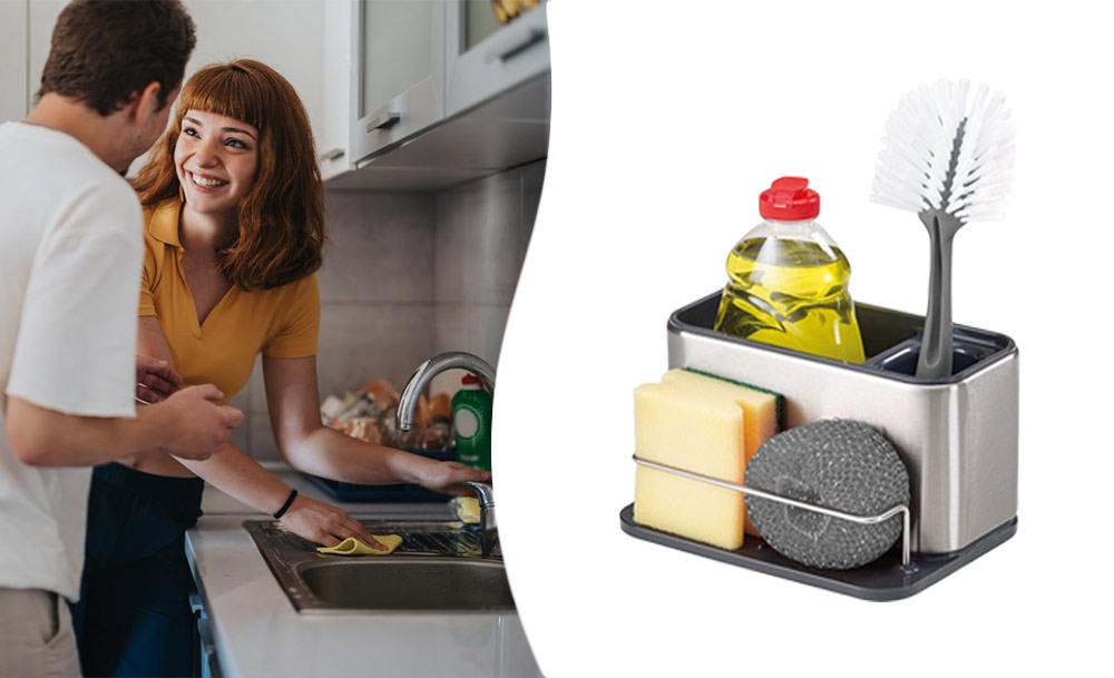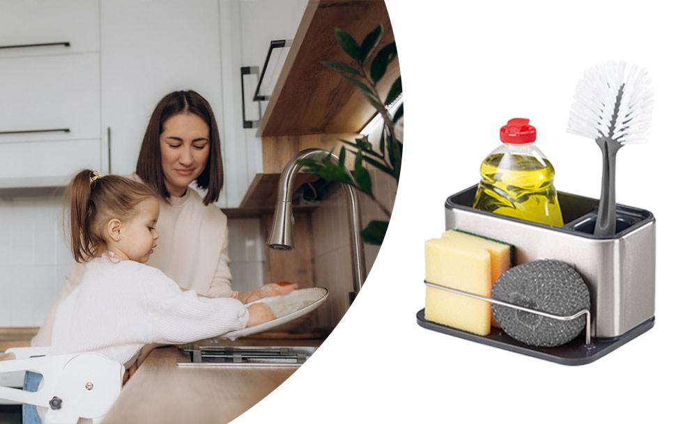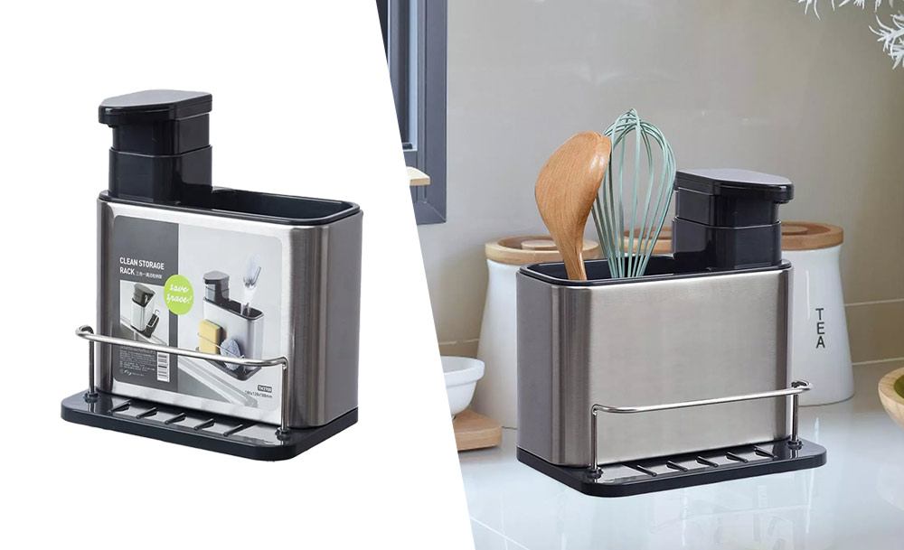 Практичный органайзер HB-19 со встроенным диспенсером для моющего средства обеспечивает удобство и функциональность. Специальный держатель для губок с дозатором жидкого мыла и моющего средства делает процесс мытья посуды еще более эффективным.