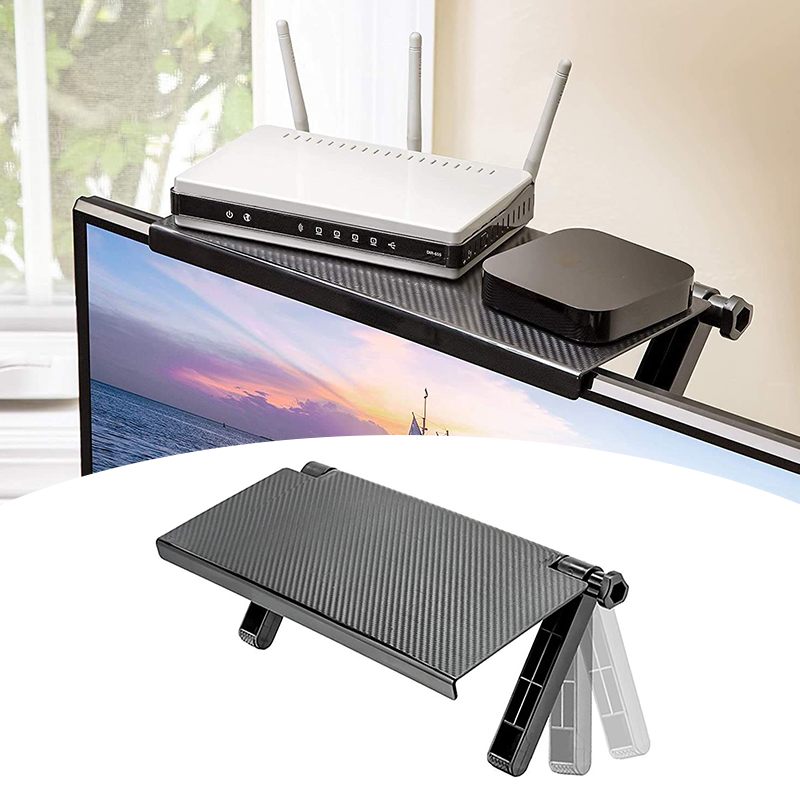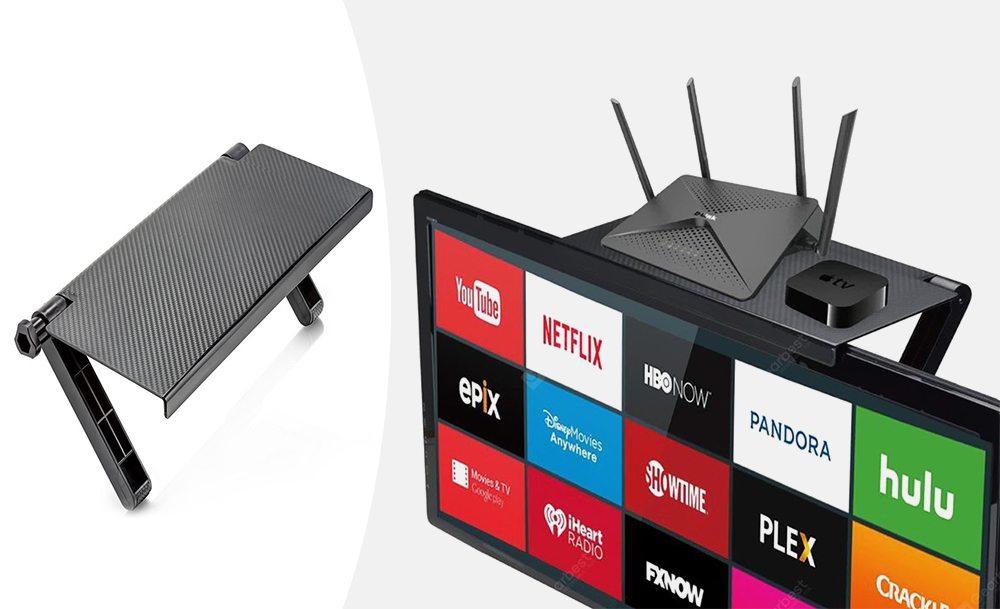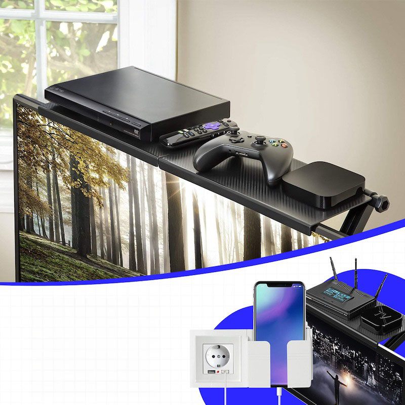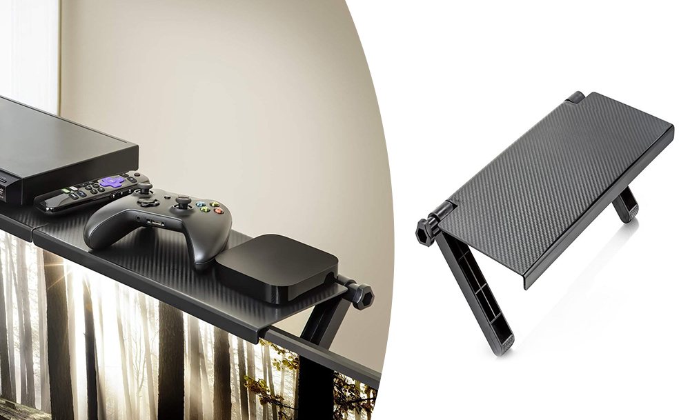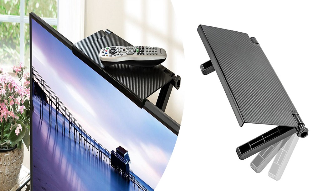 Подставка на телевизор монитор в виде аккуратной полочки поможет организовать дополнительное пространство. Она достаточно прочная, чтобы выдержать пульт дистанционного управления, приставку, WiFi-роутер или любые декоративные украшения. Пульт всегда будет на виду, не потеряется, его не достанут дети и домашние питомцы.