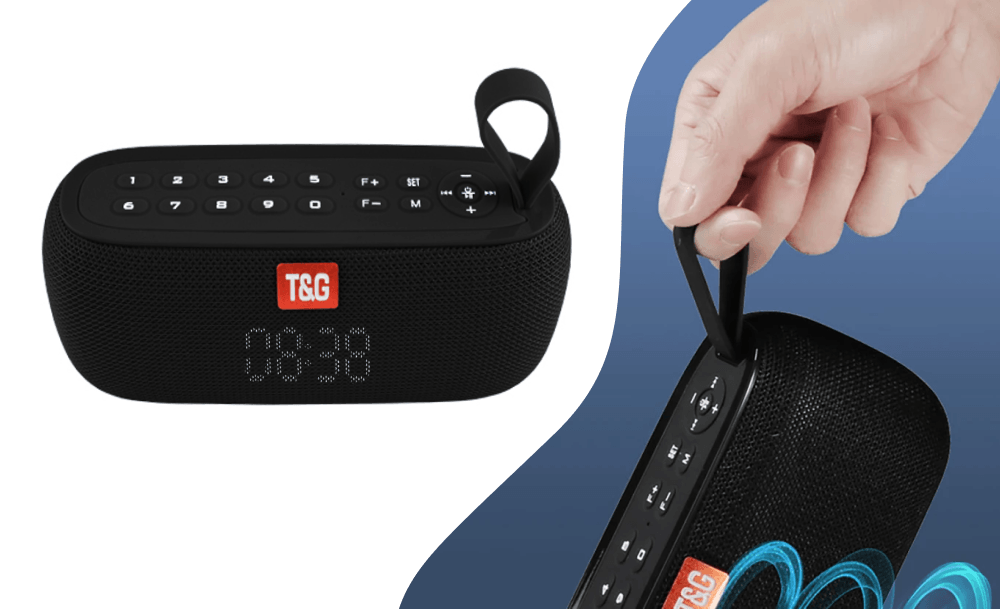Портативная Bluetooth-колонка TG177 – многофункциональный динамик, со встроенным радиоприемником, повербанком, часами, имеющий простое удобное управление с помощью кнопок. Колонка подключается к телефону, планшету, компьютеру, MP3-плеєру через Bluetooth или через AUX-кабель.