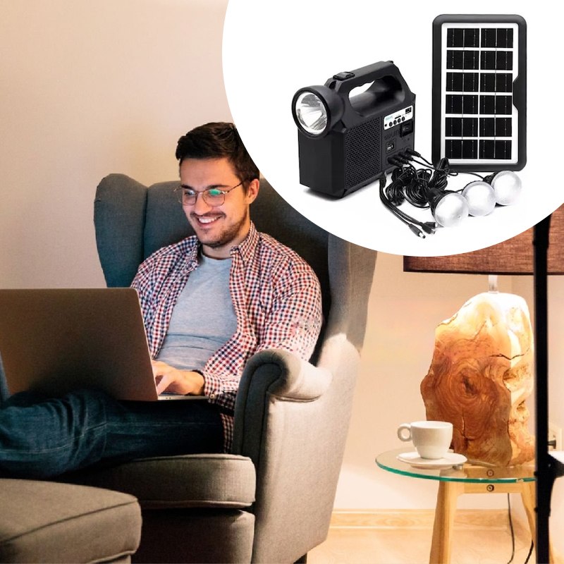 Переносной фонарь с солнечной панелью GDLITE GD101 Solar Panel, 4500 мАч, 3 лампочки 3W, USB выход. Эта солнечная система разработана для обеспечения надежного аварийного освещения и зарядки ваших гаджетов без необходимости использования электроэнергии из сети.
