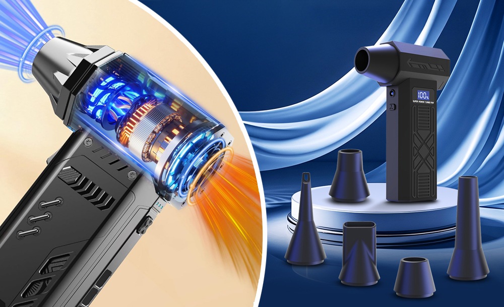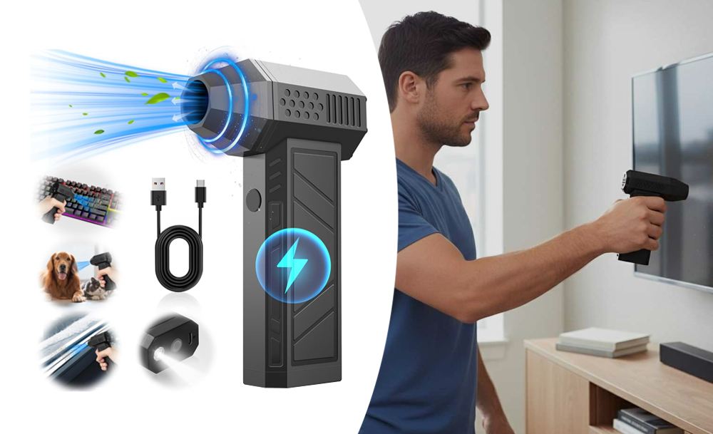 Портативный аккумуляторный турбовентилятор-компрессор Turbo Jet Fan – это универсальный инструмент, который может пригодиться дома, в гараже или в путешествии. Благодаря высокой скорости вращения и мощному потоку воздуха он эффективно справляется с множеством задач: от быстрой сушки поверхностей и разжигания костра до уборки пыли с труднодоступных мест.
