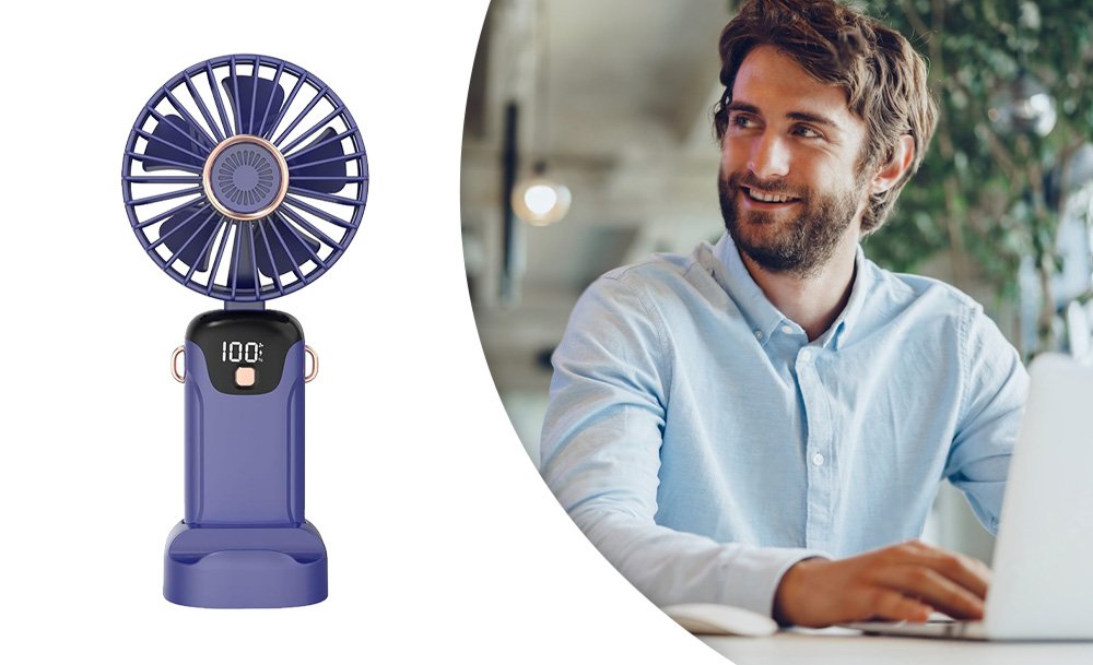 Оснащен встроенным аккумулятором емкостью 3000 mAh, обеспечивающим работу вентилятора до 7-12 часов без подзарядки. Вы всегда будете знать, сколько заряда батареи осталось благодаря встроенному дисплею.