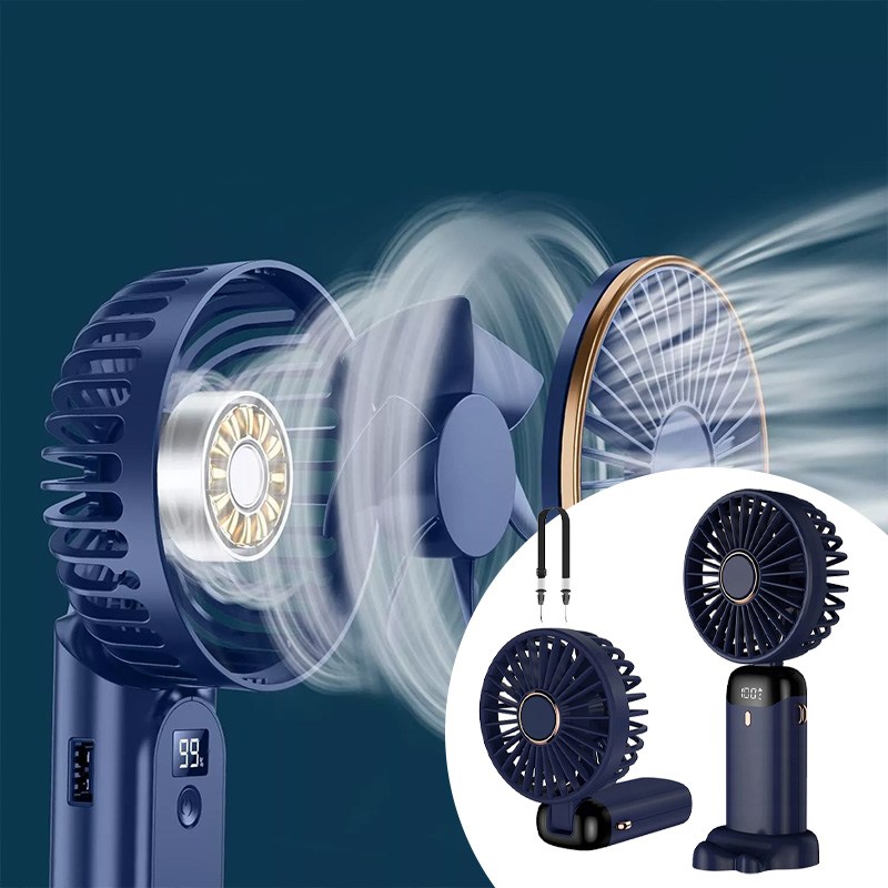 Вентилятор имеет регулируемый угол наклона и ремень, который можно повесить на шею и направить поток воздуха на себе, что обеспечит комфорт в самые жаркие дни. Вентилятор обладает высокой мощностью и 5 режимами работы. Вентилятор обладает удобной подставкой под телефон, которая позволит разместить телефон под идеальным углом наклона для просмотра фильмов или видео.