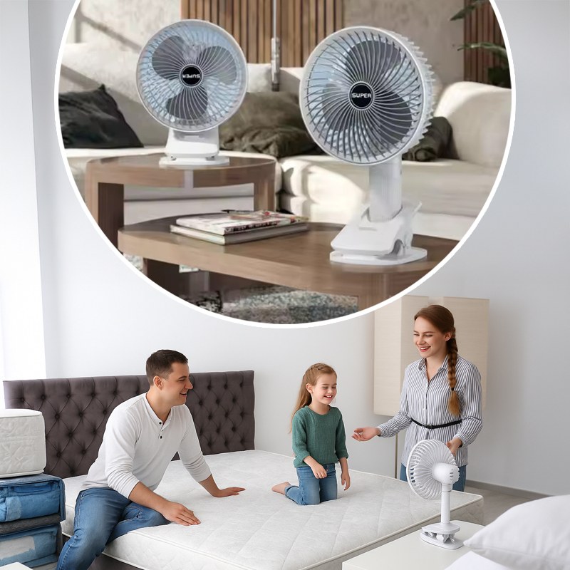 Портативный вентилятор Clip+Mobile Stand — это надёжное и компактное решение для персонального охлаждения в любых условиях. Благодаря мощному потоку воздуха и удобной прищепке устройство легко крепится на стол, полку, коляску или кровать. Идеально подходит для дома, офиса, поездок и отдыха на природе.