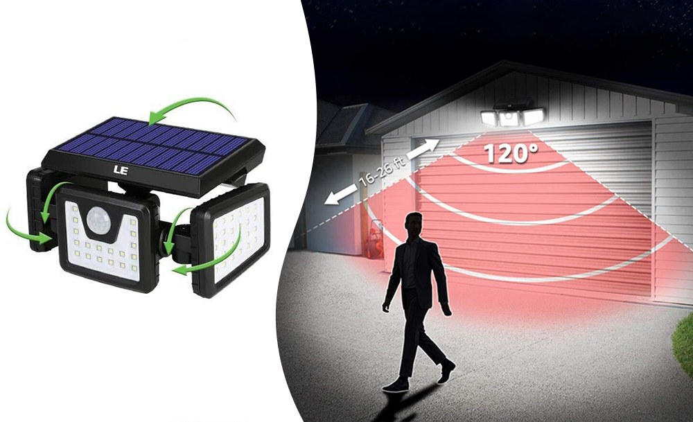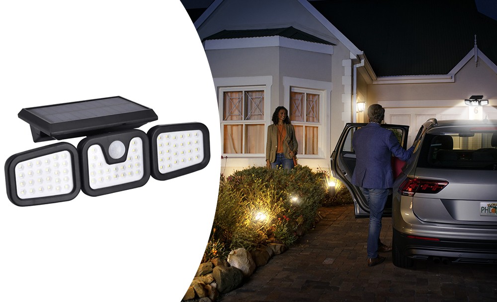 Поворотной тройной настенный светильник с датчиком движения и солнечной батареей – это прекрасная возможность сделать уютным и комфортным внутренний дворик около дома или на даче, осветить дорожку, подъездные пути и даже палаточный лагерь. Его можно закрепить на любой поверхности, где это необходимо.