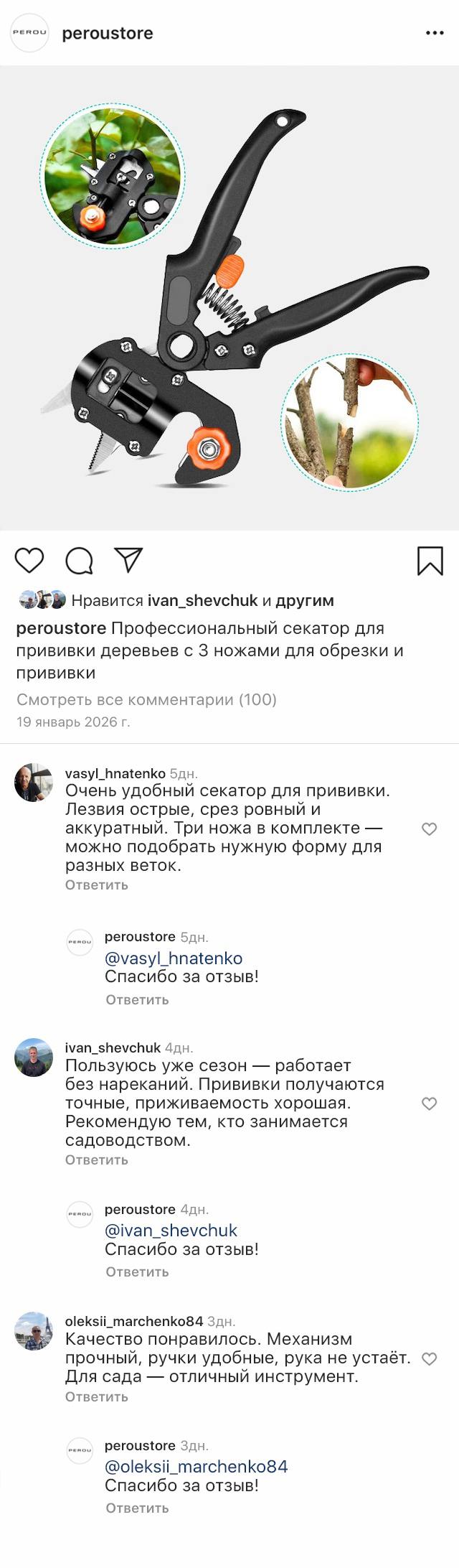 Профессиональный секатор с тремя сменными ножами – это максимум точности и комфорта в одном инструменте. Он позволяет одновременно выполнять обрезку и прививку, поэтому для лучшей приживаемости растений делает идеально совпадающие срезы.