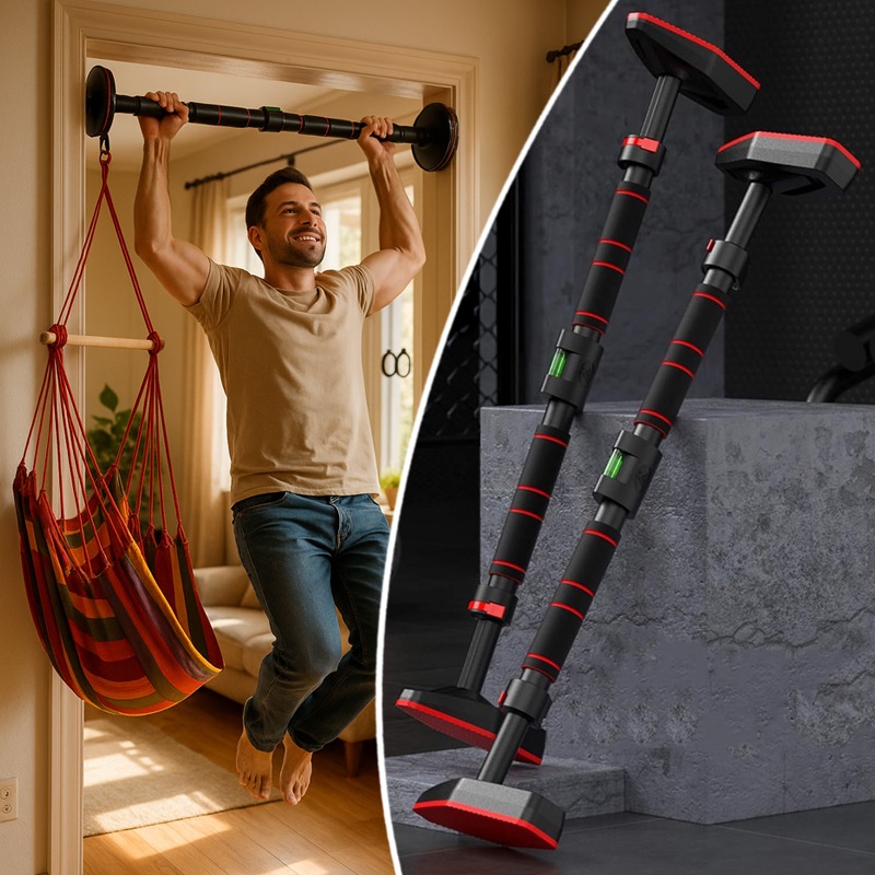 Раздвижной турник Pull-Up Bars 3 в 1 — универсальное спортивное оборудование для всей семьи. Прочная металлическая конструкция надёжно фиксируется в дверном проёме без сверления и выдерживает значительные нагрузки, обеспечивая безопасность при тренировках.