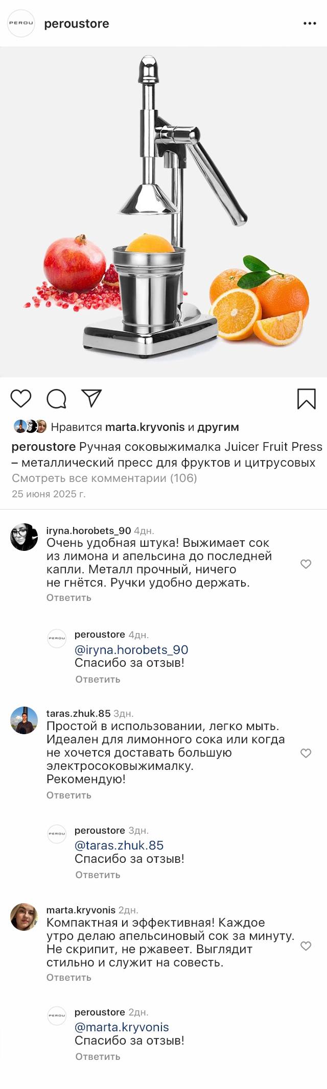 Этот пресс идеально подходит для приготовления натуральных соков, коктейлей или заготовок на зиму. Лёгкий в уходе и компактный, он займёт минимум места на кухне. Наслаждайтесь свежестью и пользой натуральных фруктов каждый день!