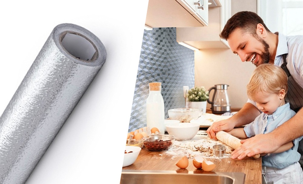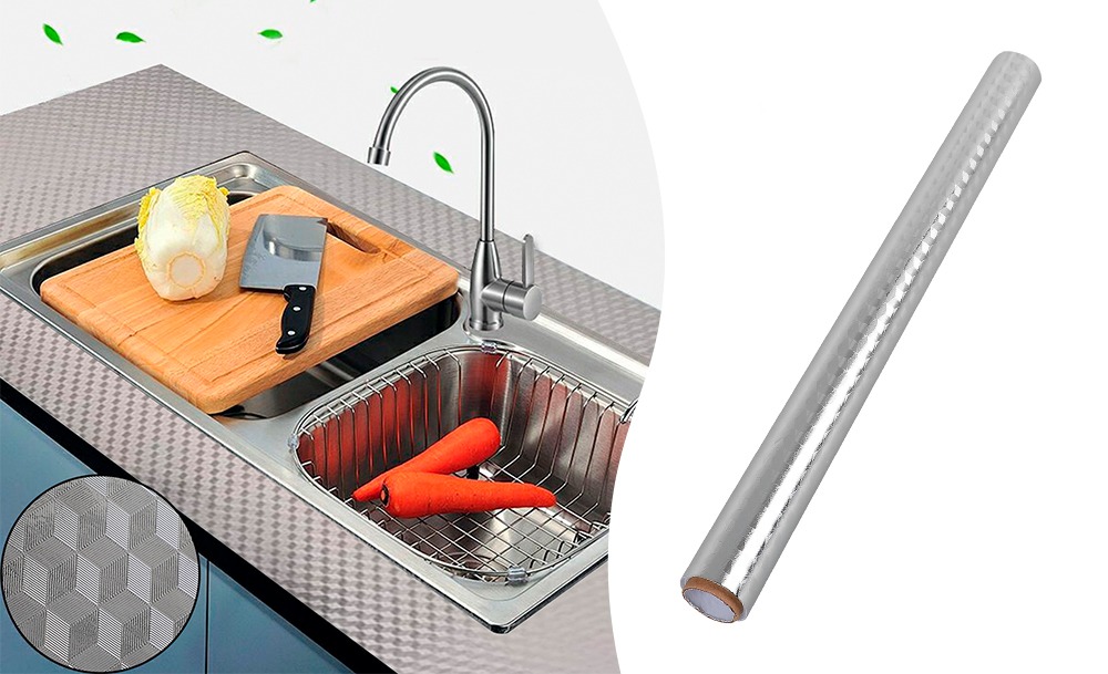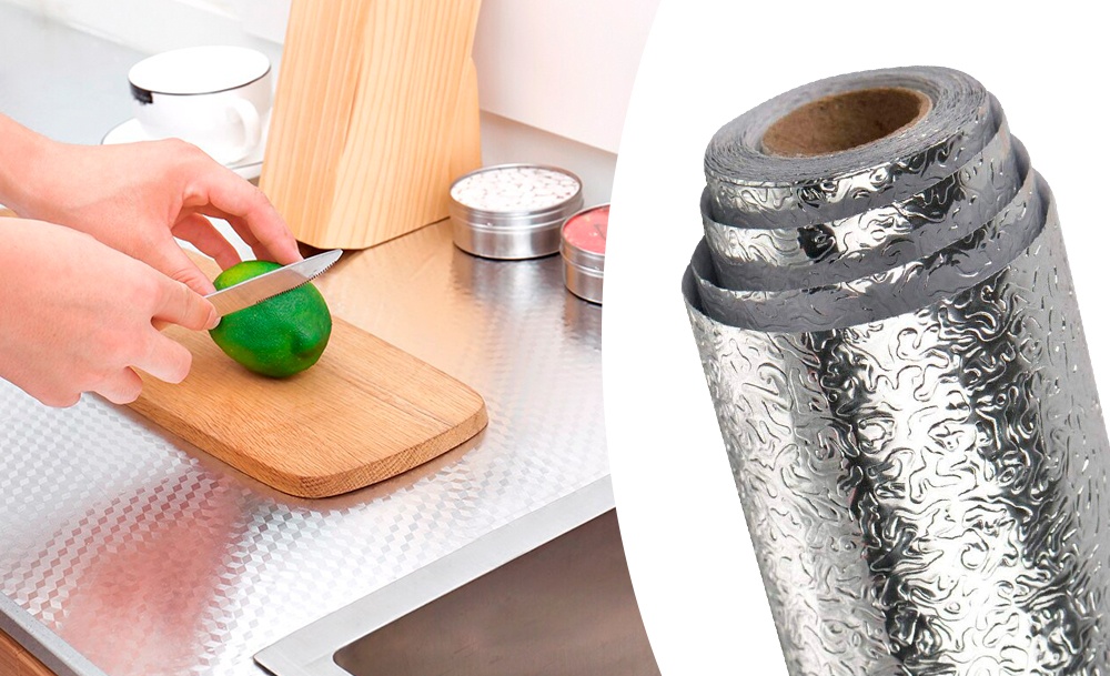 Алюминиевая фольга обладает антипригарной функцией, поэтому она идеально подойдет для кухонной плиты, печи и столешницы. Декоративная самоклеящаяся пленка поможет легко и быстро обновить интерьер и придать ему стильный внешний вид.