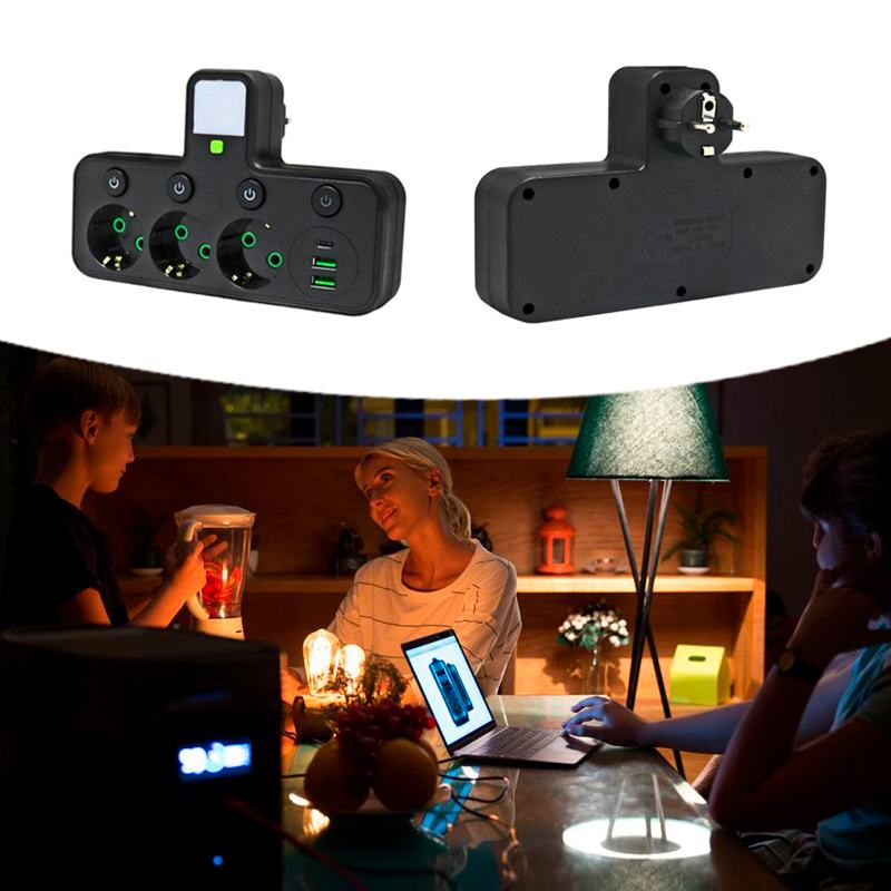 Высококачественный сетевой фильтр с 3 евророзетками, USB-портами и Type-C обеспечит безопасность и стабильность работы вашей техники. Тройник содержит сетевые разъемы, которые обеспечивают защиту от короткого замыкания и перегрузки, а встроенный светильник можно использовать в качестве ночника.
