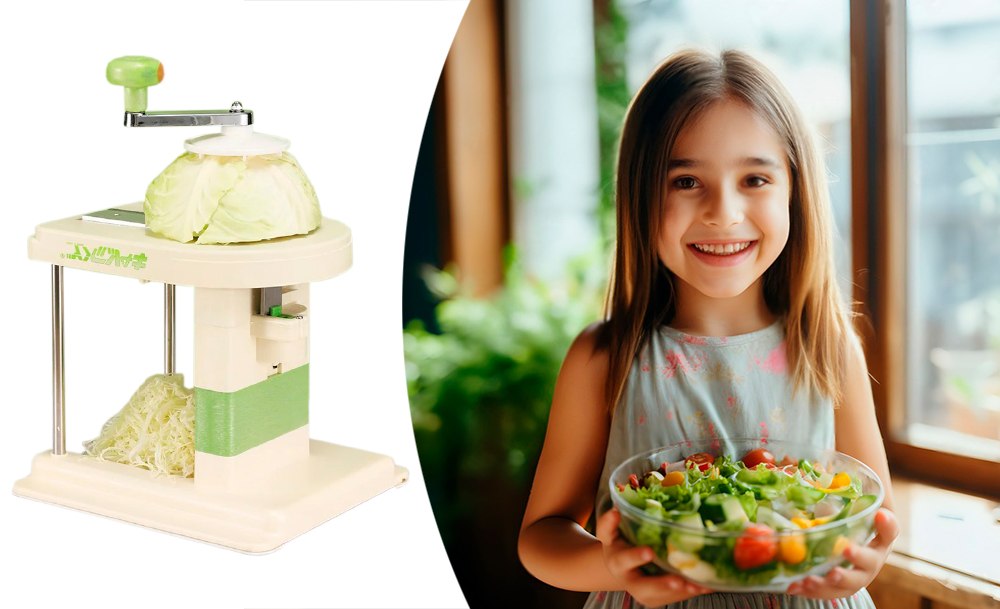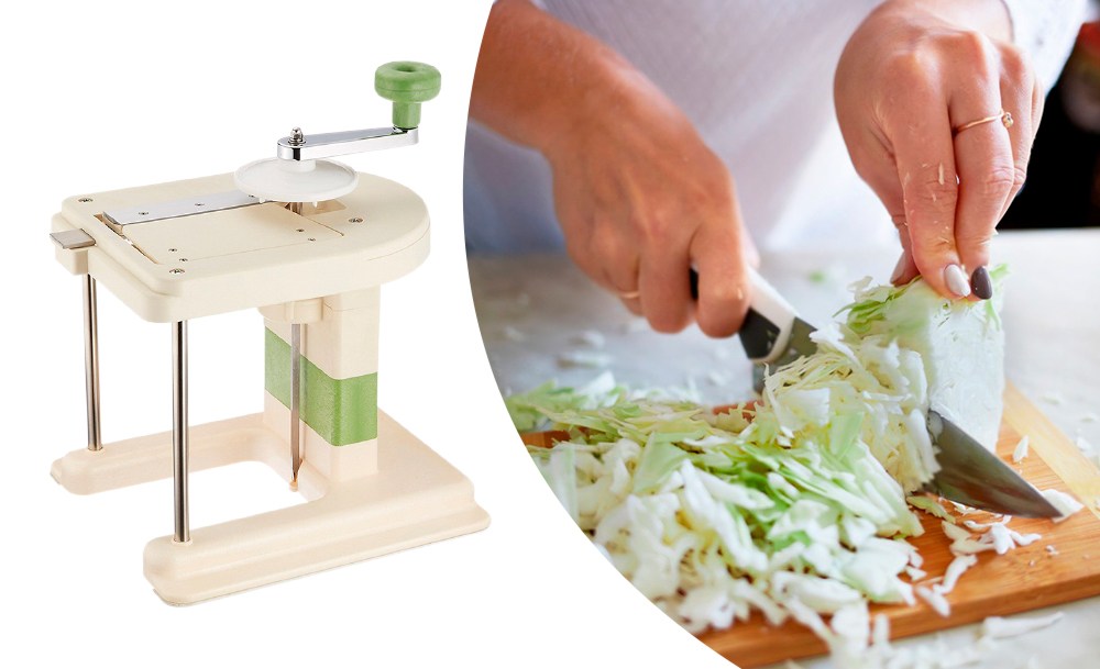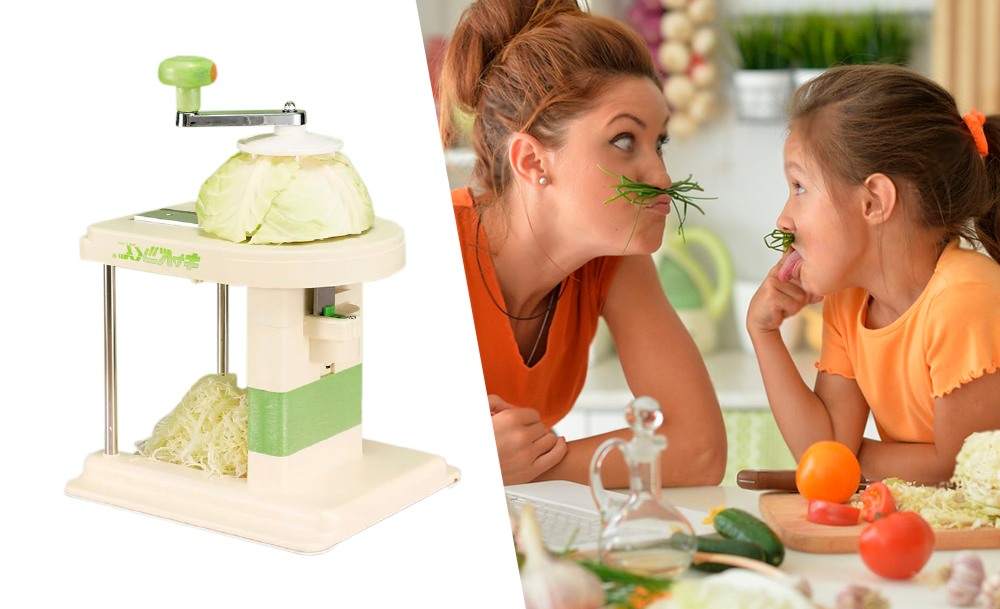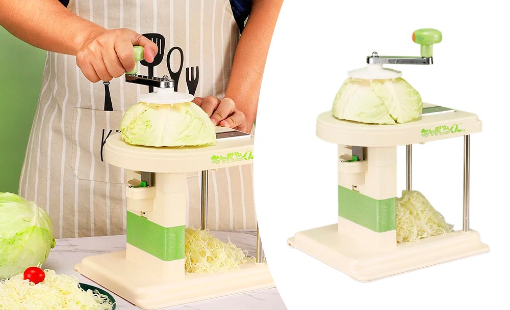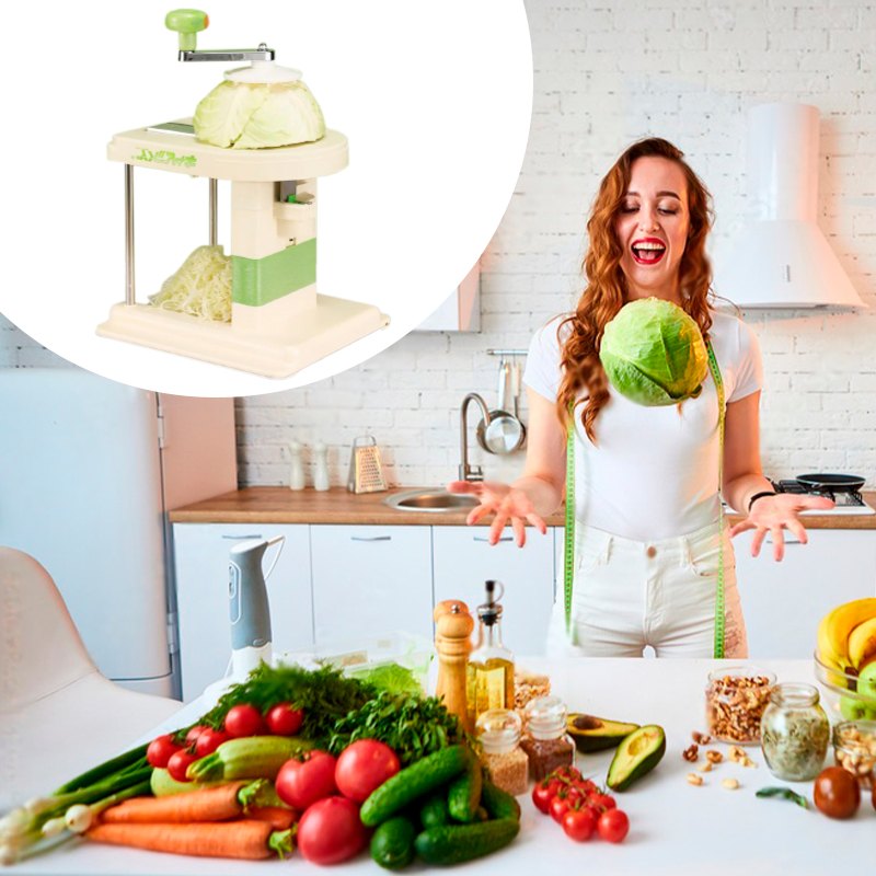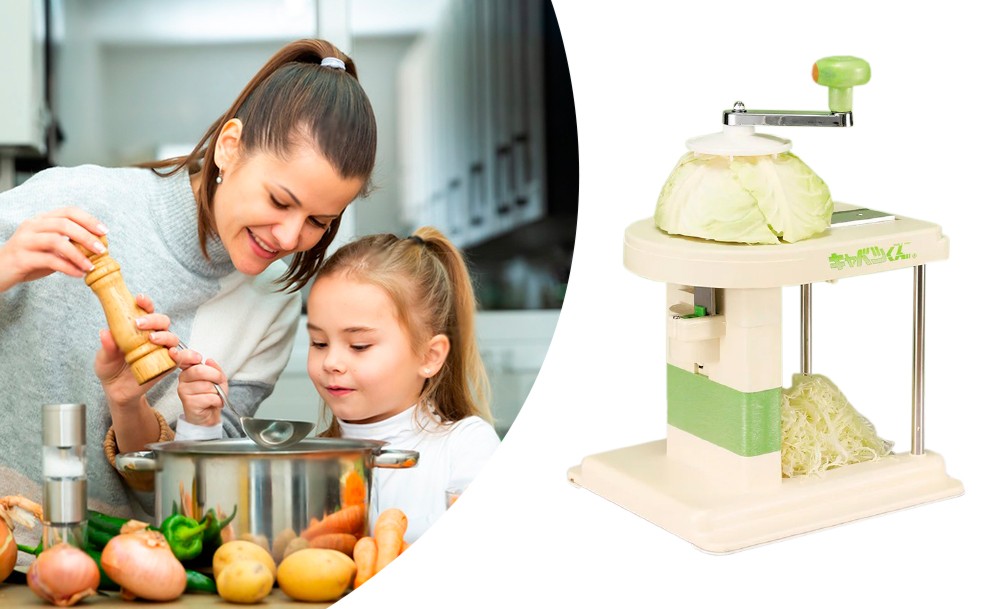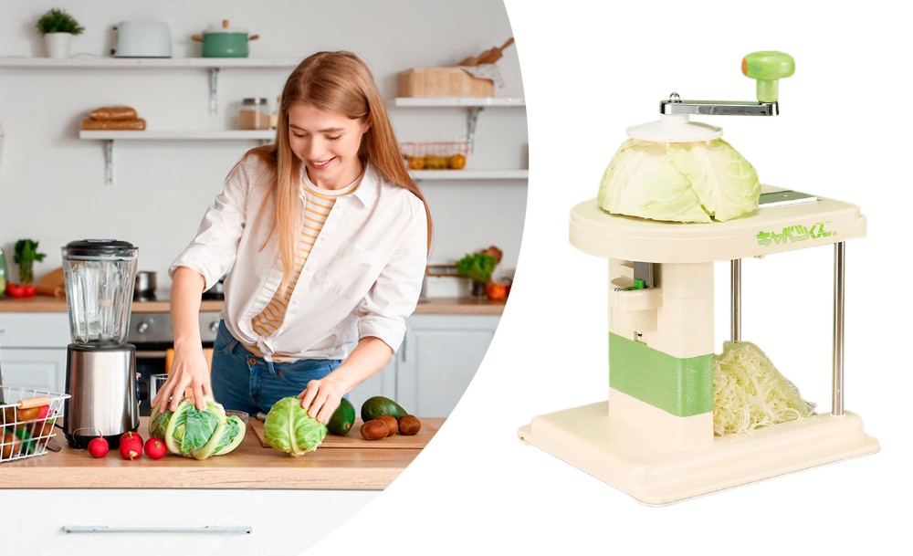 Механическая шинковка для капусты – это мощный и эффективный помощник на кухне для сезонных заготовок и приготовления повседневных блюд с капустой!Она очень простая в использовании. Зафиксируйте кочерыжку, установите необходимую ширину нарезки, покрутите ручку. Готово!
