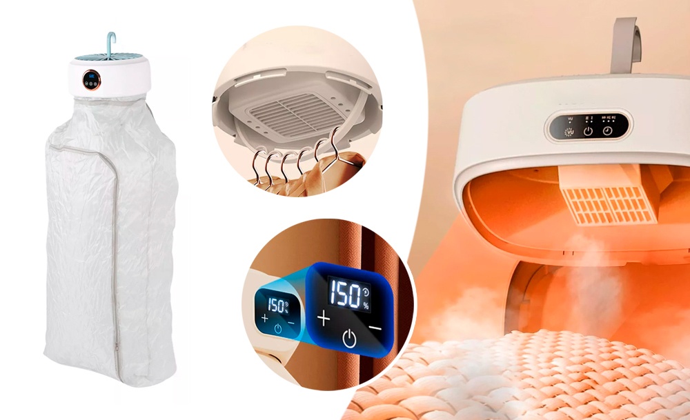 Технология трехмерной сушки поддерживает постоянную температуру 60°, что позволяет равномерно высушивать одежду, сохраняя её мягкость и предотвращая сминание. Компактный дизайн в сложенном виде упрощает хранение и транспортировку. Дополнительную защиту обеспечивает ультрафиолетовая стерилизация с эффективностью до 99%.