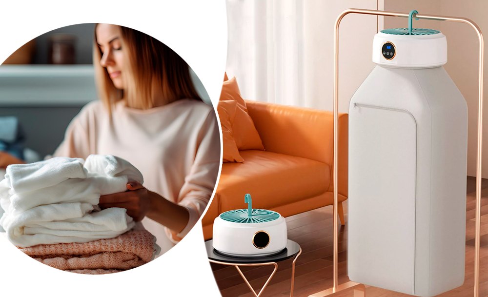 Портативная сушилка для одежды обеспечивает всестороннюю сушку различных материалов, включая верхнюю одежду и детские вещи. Идеально подходит для домашнего использования.