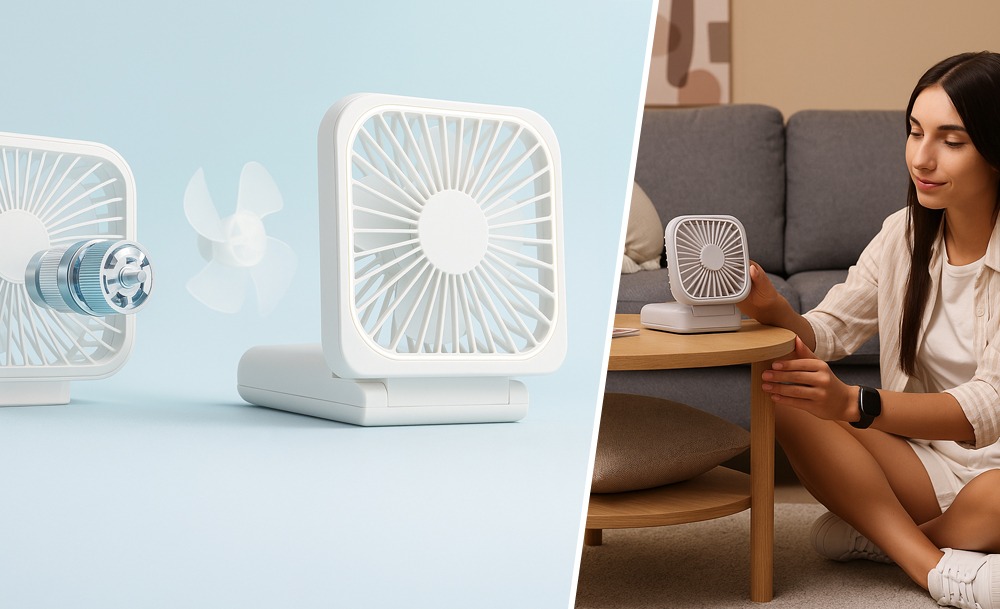 Вентилятор имеет несколько режимов скорости, позволяющих настроить поток воздуха под индивидуальные потребности. Тихая работа устройства делает его идеальным для использования дома, в офисе или во время путешествий, обеспечивая комфорт в любой ситуации.