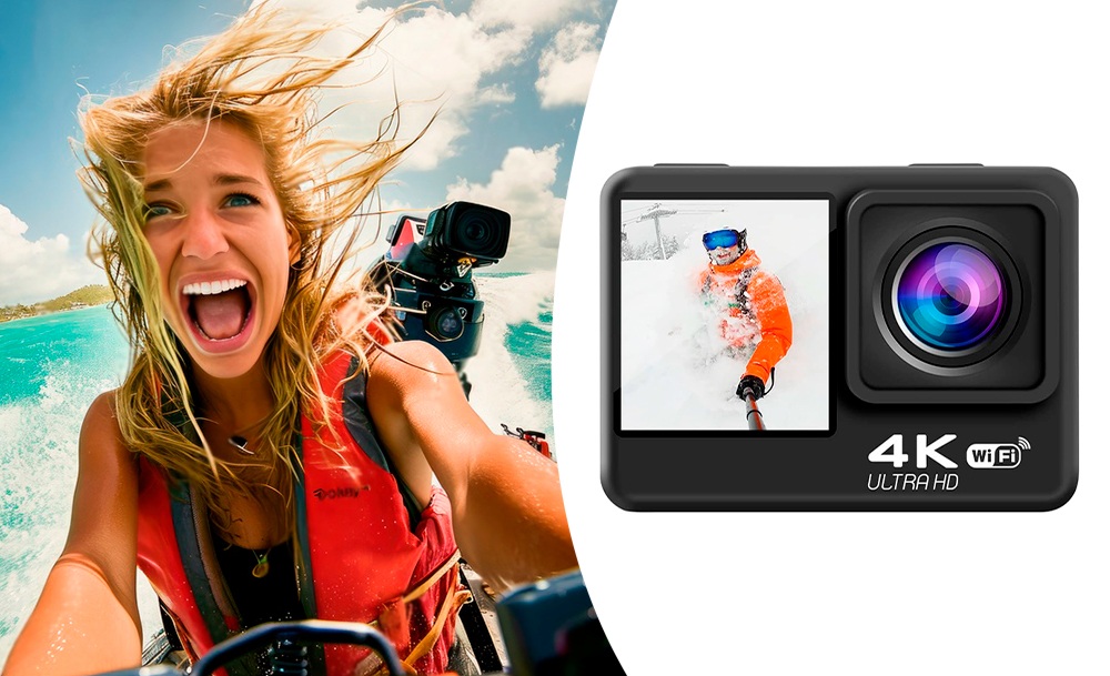 Она является лучшим выбором для спортивной съемки на открытом воздухе, наблюдения за домом и съемки под водой. С этой камерой вы можете записывать свою жизнь в любое время и в любом месте. С помощью креплений камеру можно установить под нужным углом или зафиксировать на голове и делать фото и видеосъемку в любых погодных условиях.